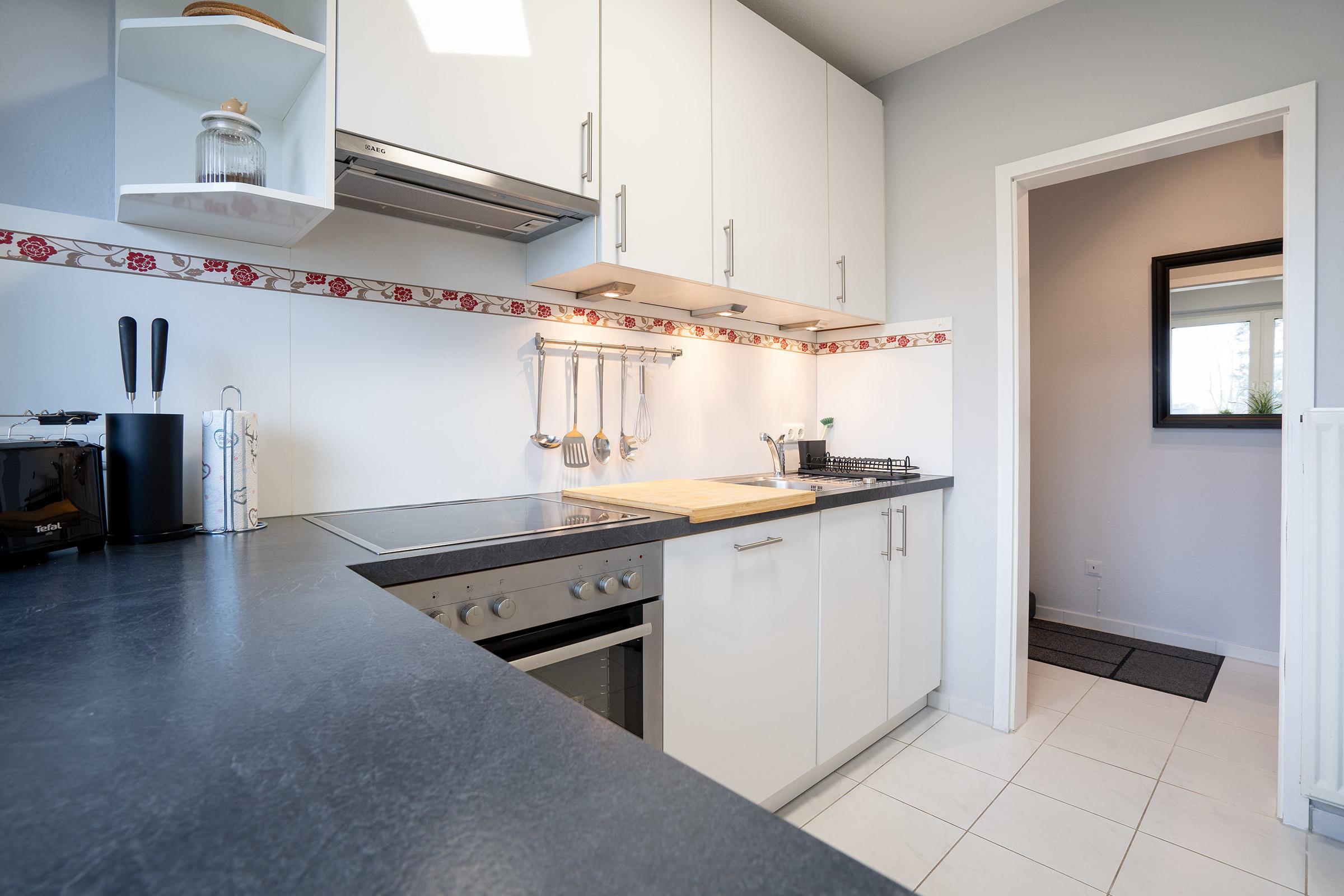 - Küche: Voll ausgestattete Küche mit allen notwendigen Geräten wie Herd, Backofen, Kühlschrank und Geschirrspüler.