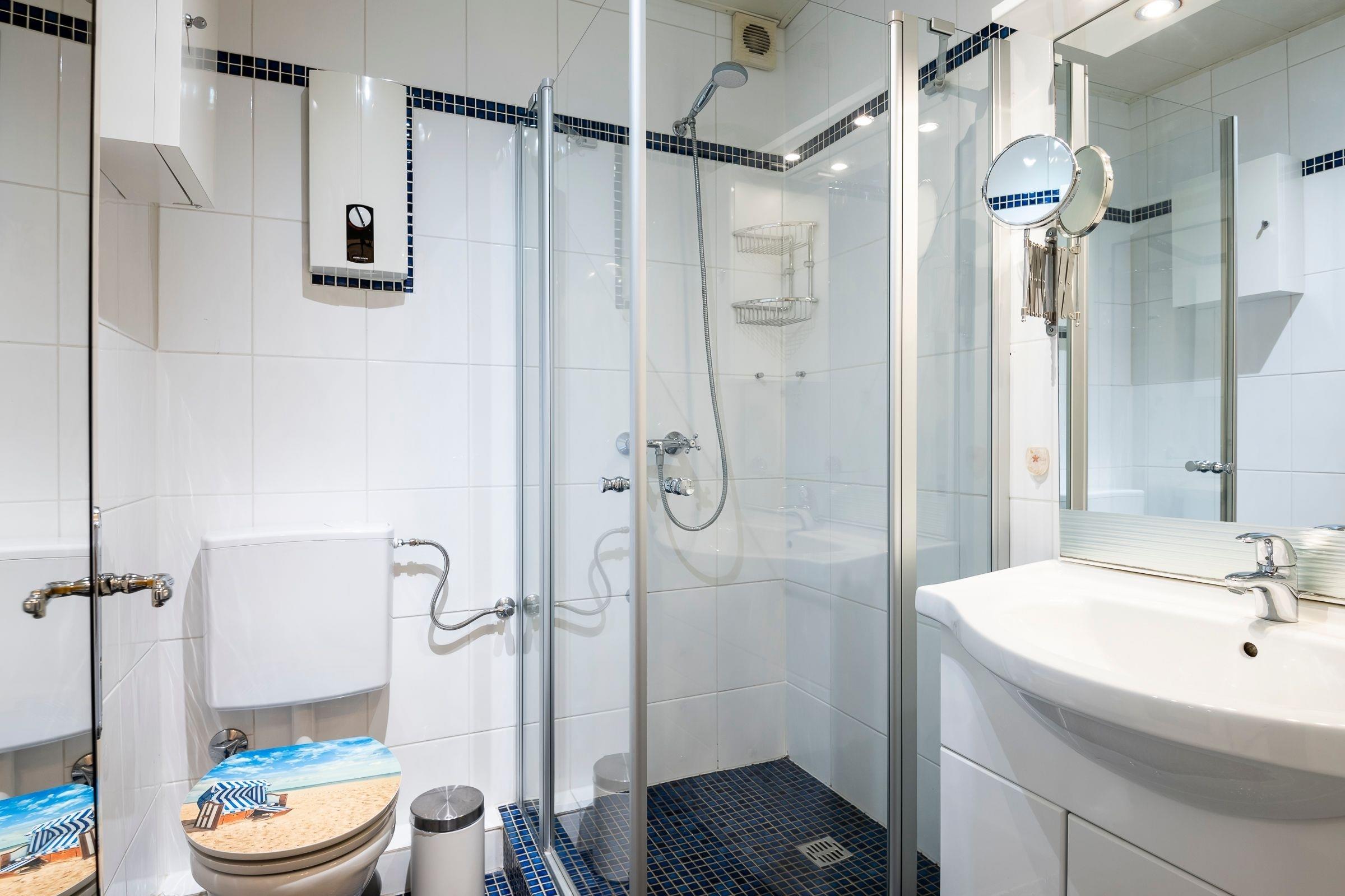 die FeWo ist gut geschnitten und auch ausreichend ausgestattet, allerdings mit kleinen Macken. Die Steckdose im Bad funktioniert nicht. Zumindest nicht, um einen Föhn darin zu benutzen, was ärgerlich ist, wenn man vor dem Spiegel die Haare föhnen möchte.
