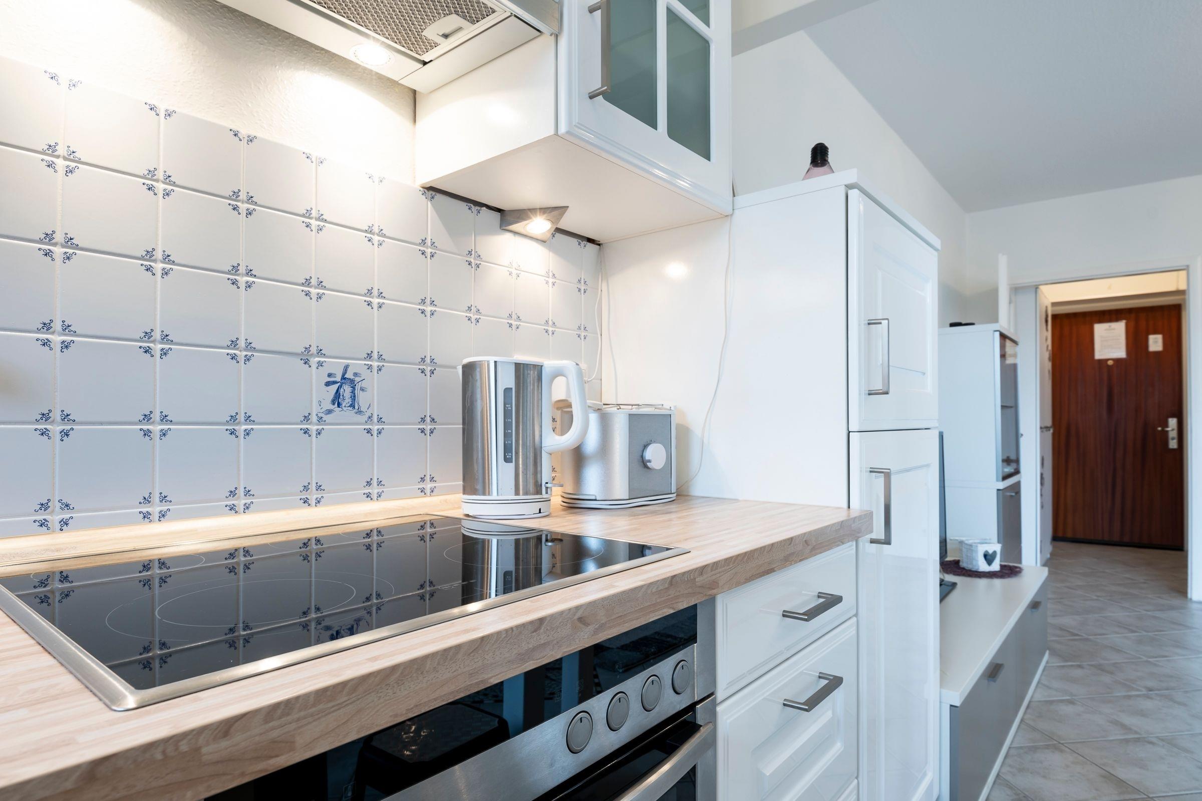 Die Wohnung ist genau wie beschrieben. Sehr bequemes Boxspringbett. Die Küche ist mit Küchenutensilien sehr gut ausgestattet. Das einzige was wir vermisst haben sind die kleinen täglichen Dinge, wie z.B. Filter für die Kaffeemaschine und Flüssigseife im Bad, Küchentücher und div. andere Kleinigkeiten die meist in FeWo vorhanden sind. Die Lage der Wohnung ist prima, sehr ruhig und trotzdem schnell zu Fuß zum Einkaufen oder an den Strand. Wir würden die Wohnung wieder mieten.
