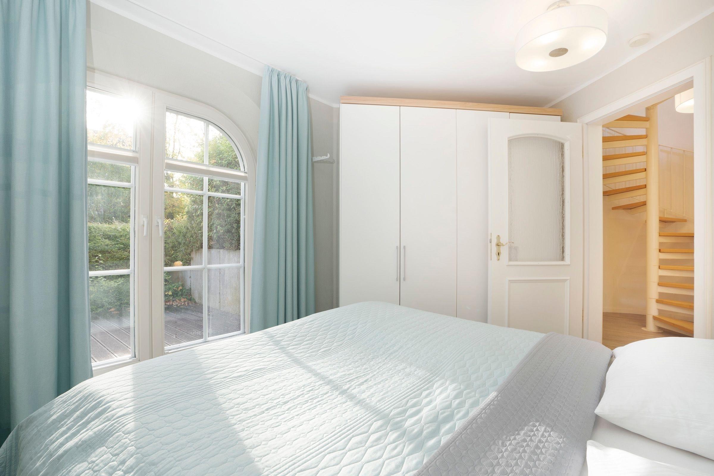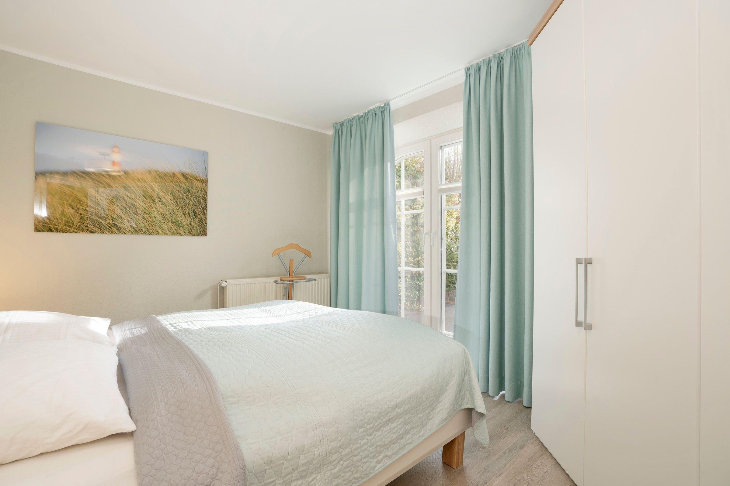 Schlafzimmer 1: 1 Doppelbett (2x 90x200 cm), Verdunkelung (Vorhänge, Plissees)