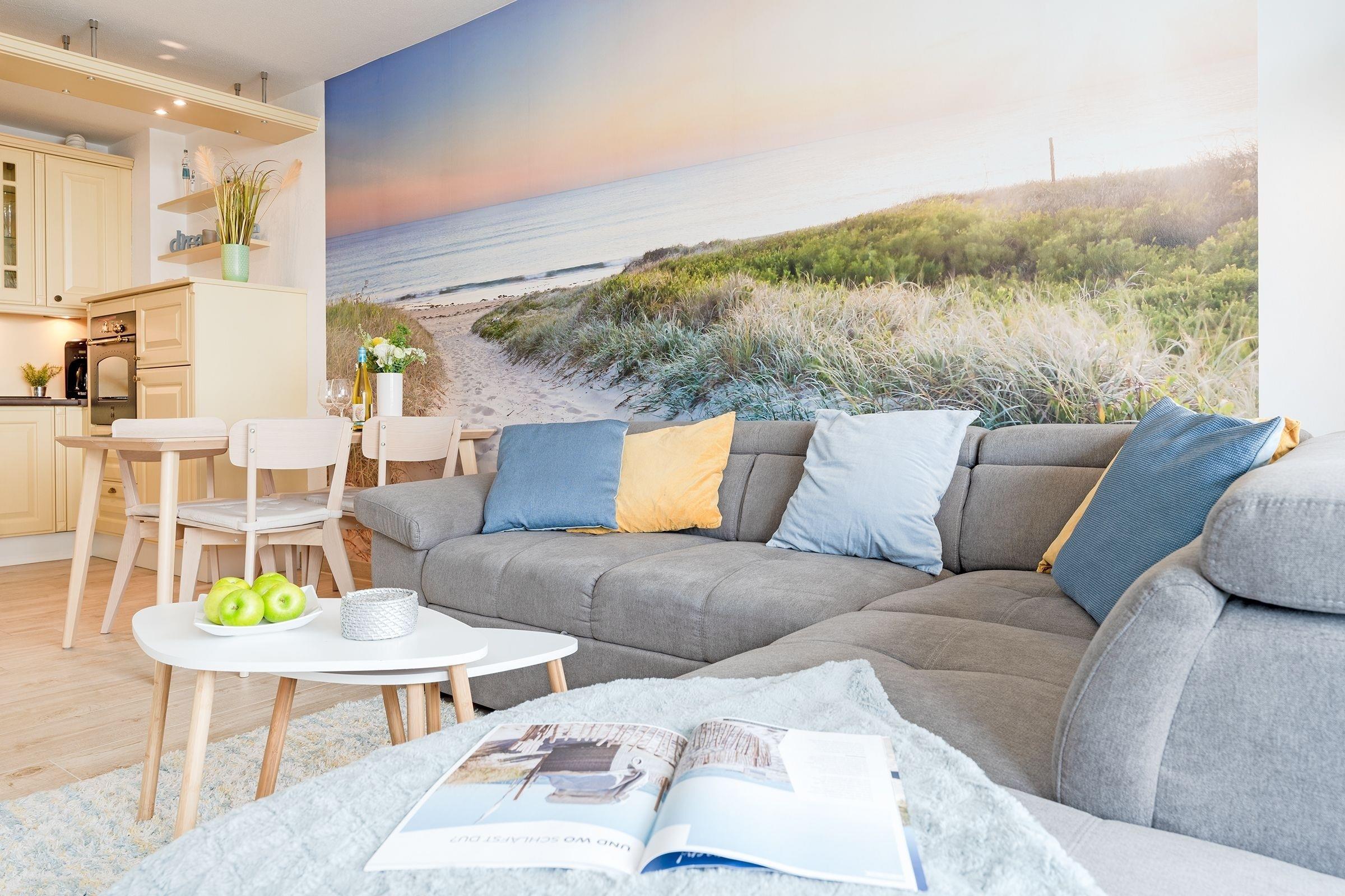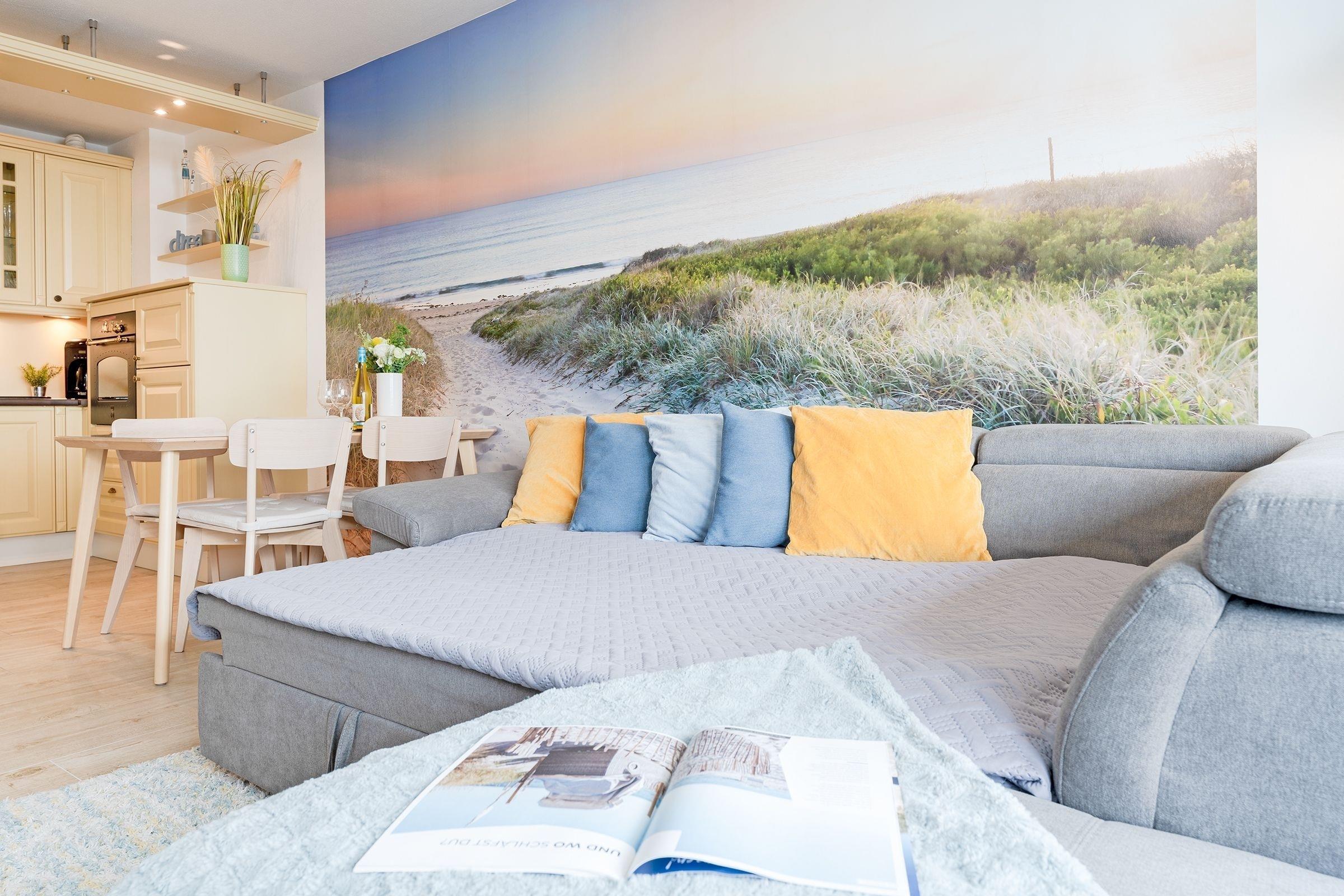 Ganz nah an der Ostsee und der Dünenmeile mit seinen Restaurants und Geschäften liegt Ihre ca. 60 m² große, modern eingerichtete 2-Zimmer-Ferienwohnung für max. 4 Personen in der 1. Etage im Haus Meeresstrand .