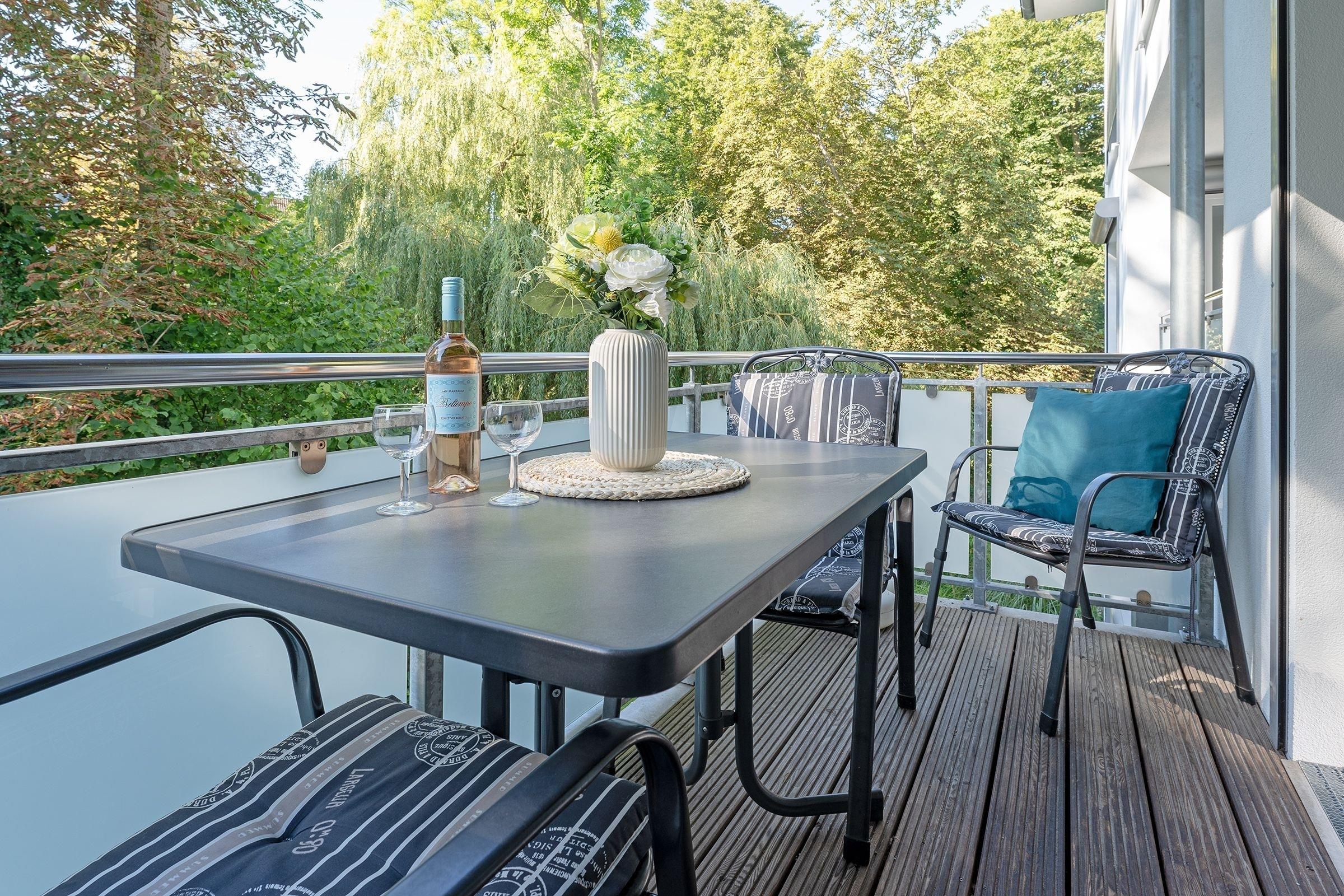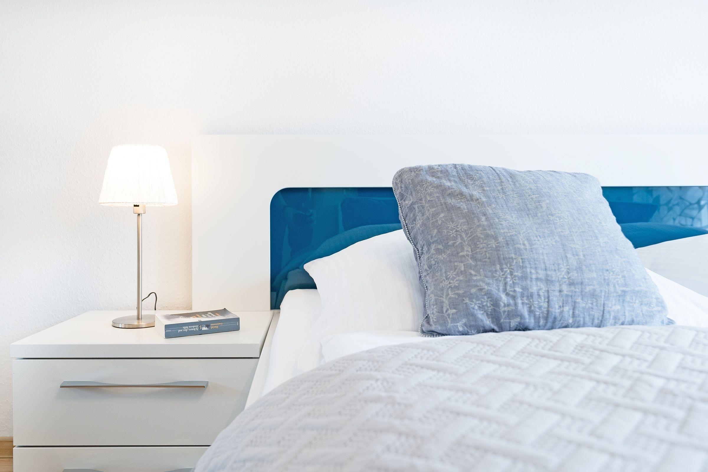 Im hell eingerichteten Schlafzimmer mit Doppelbett (2x90x200cm), großem Schiebetürenschrank und Flat-TV werden Sie traumhaft schlafen. Neben dem Bett kann ein Kindereisebett aufgestellt werden. Daneben das Wohnzimmer mit offener Küche und Essplatz ist harmonisch aufeinander abgestimmt und mit liebevollen Details dekoriert. Die Couch lässt sich mühelos zu einer Schlafgelegenheit (160x200cm) verwandeln. Ein überdachter Balkon mit Blick ins Grüne können Sie vom Wohn- und Schlafzimmer aus betreten, hier lässt es sich wunderbar aushalten bei angenehmen Temperaturen. Elektrische Außenrolladen sind bei beiden Zimmern angebracht. Ob Sie nur Frühstück zubereiten oder kochen möchten wie zu Hause, hier wird es Ihnen an nichts fehlen, die Küche ist mit Allem ausgestattet. Im kleinen Abstellraum vom Flur aus steht Ihnen sogar eine Waschmaschine für die Wäsche zwischendurch zur Verfügung. Daneben ist gleich das moderne Duschbad mit ebenerdiger Dusche, Fußbodenheizung, Handtuchwärmer, WC und Föhn. WLAN sowie ein Babyreisebett und ein Kinderhochstuhl stehen Ihnen kostenfrei zur Verfügung.
