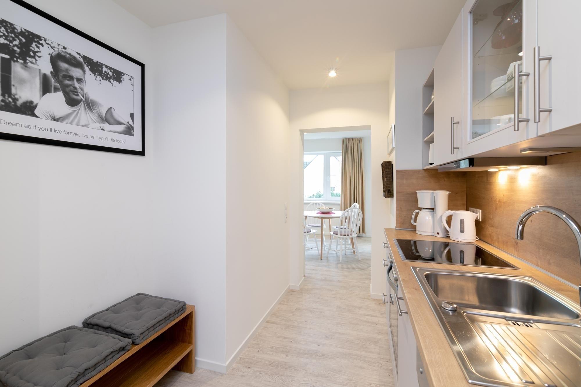 Das geschmackvolle Appartement James Dean im zeitlosen Riviera Maison-Stil befindet sich im 1. OG, verfügt über ca. 53 m² Wohnfläche und bietet ausreichend Platz für max. 2 Erwachsene (keine Kinder). Das Feriendomizil überzeugt mit lässig-modernem Design und einladender Gemütlichkeit.