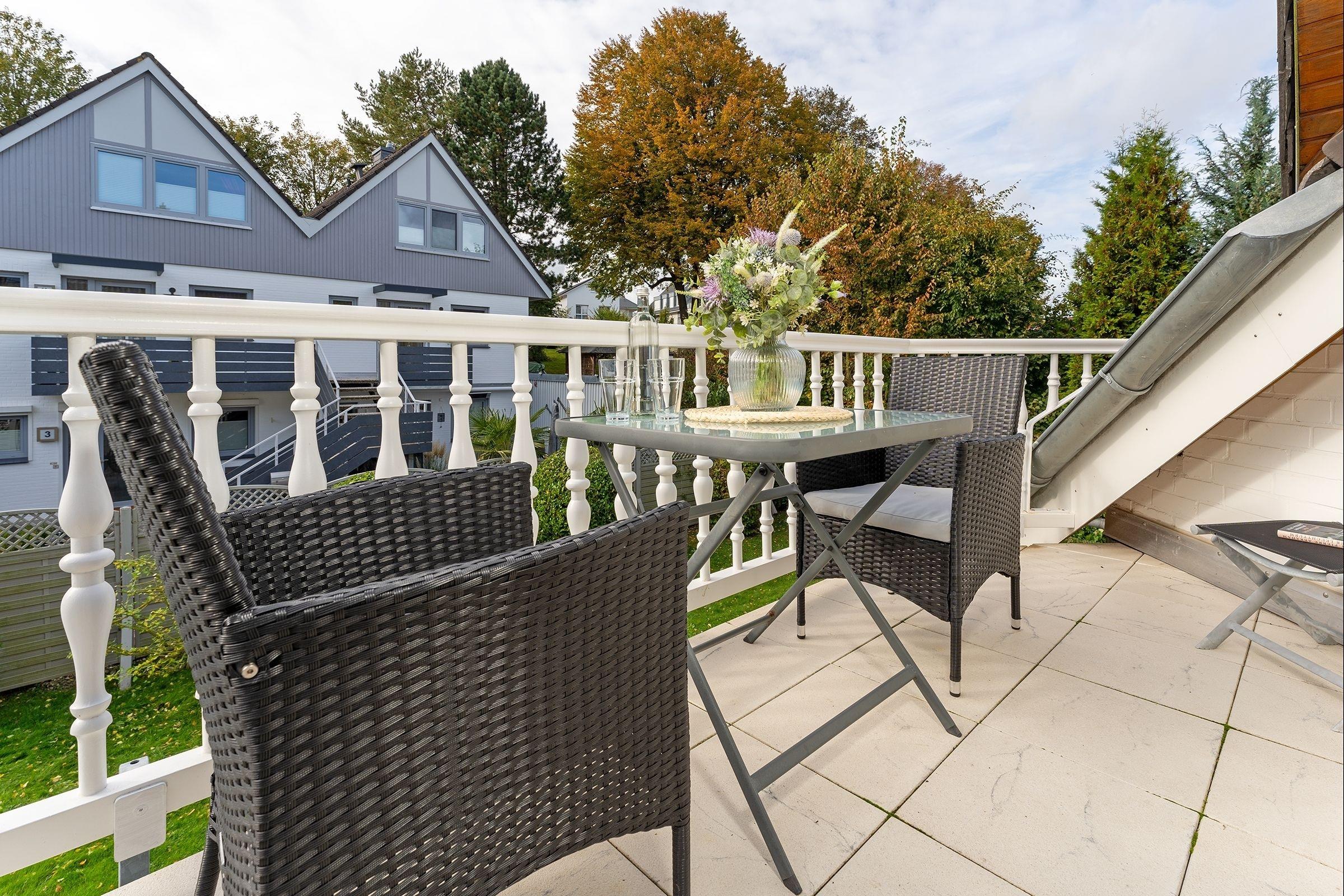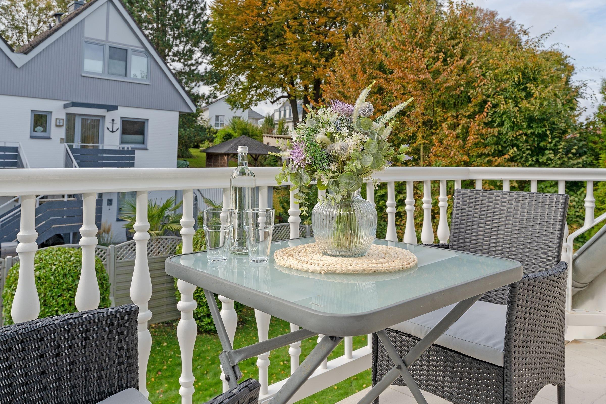 Sehr schöne Wohnung, direkt hinterm Kurpark! Der Balkon ist ideal, um dort mit zwei Personen zu frühstücken oder abends noch ein Glas Wein zu trinken.