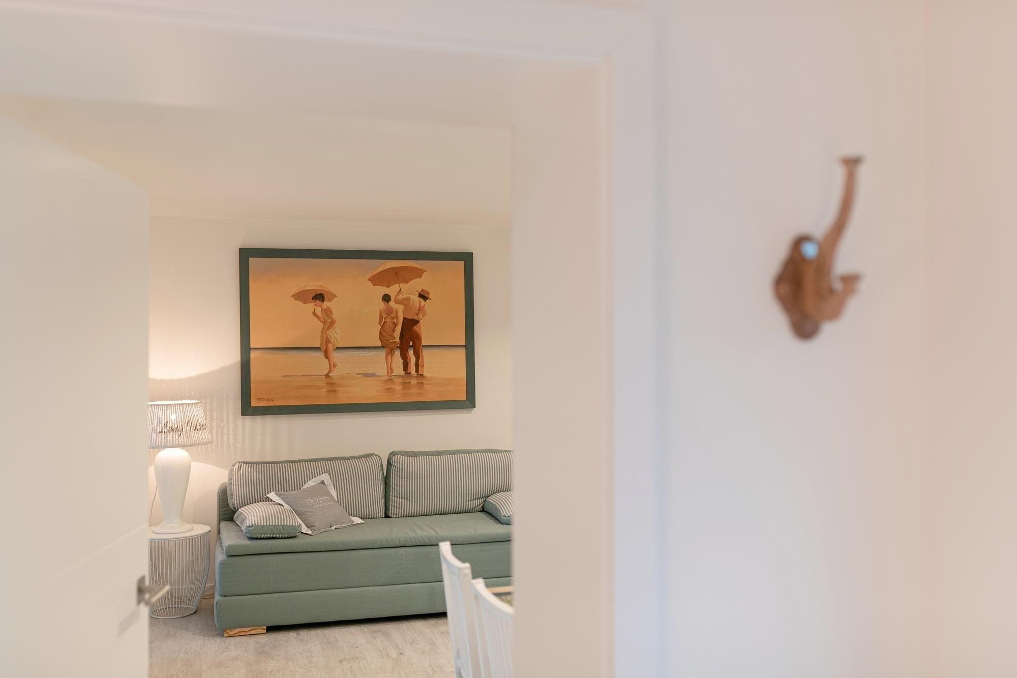 Das geschmackvolle Appartement Frank Sinatra im zeitlosen Riviera Maison-Stil befindet sich im 1. OG, verfügt über ca. 49 m² Wohnfläche, 2 Balkone und bietet ausreichend Platz für max. 2 Erwachsene und 2 Kinder. Ihr Feriendomizil begeistert mit viel Licht und opulenter Raumaufteilung.