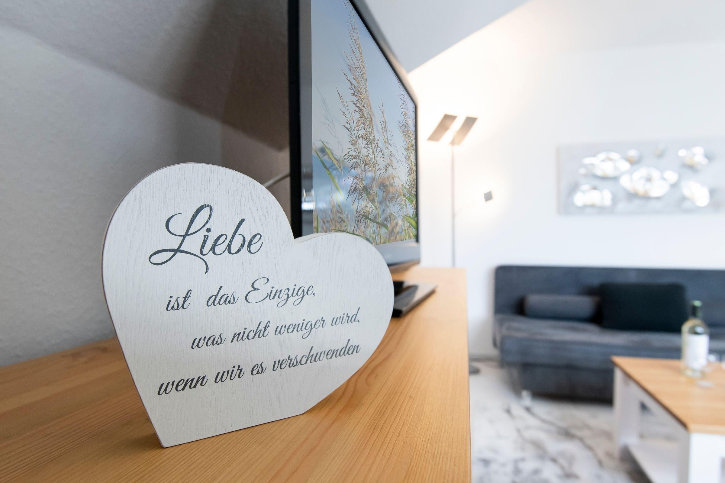 Auf 2 Zimmer verteilen sich hier das Schlafzimmer mit einem Doppelbett und das helle Wohnzimmer im Landhausstil mit gemütlicher Schlafcouch, angrenzender offener Küche und Essbereich. Für Unterhaltung sorgen ein TV und ein Radio. Vom Wohnzimmer haben Sie Zugang zum möblierten Balkon mit Süd-Ausrichtung. Starten Sie hier doch direkt Ihren Tag mit frischen Brötchen und heißem Kaffee. Die Küche ist voll ausgestattet mit Backofen, Gefrierfach, Herd, Kaffeemaschine, Kühlschrank, Mikrowelle, Spülmaschine, Toaster und Wasserkocher. Das moderne Bad mit Dusche und Föhn rundet diese Ferienwohnung ab.