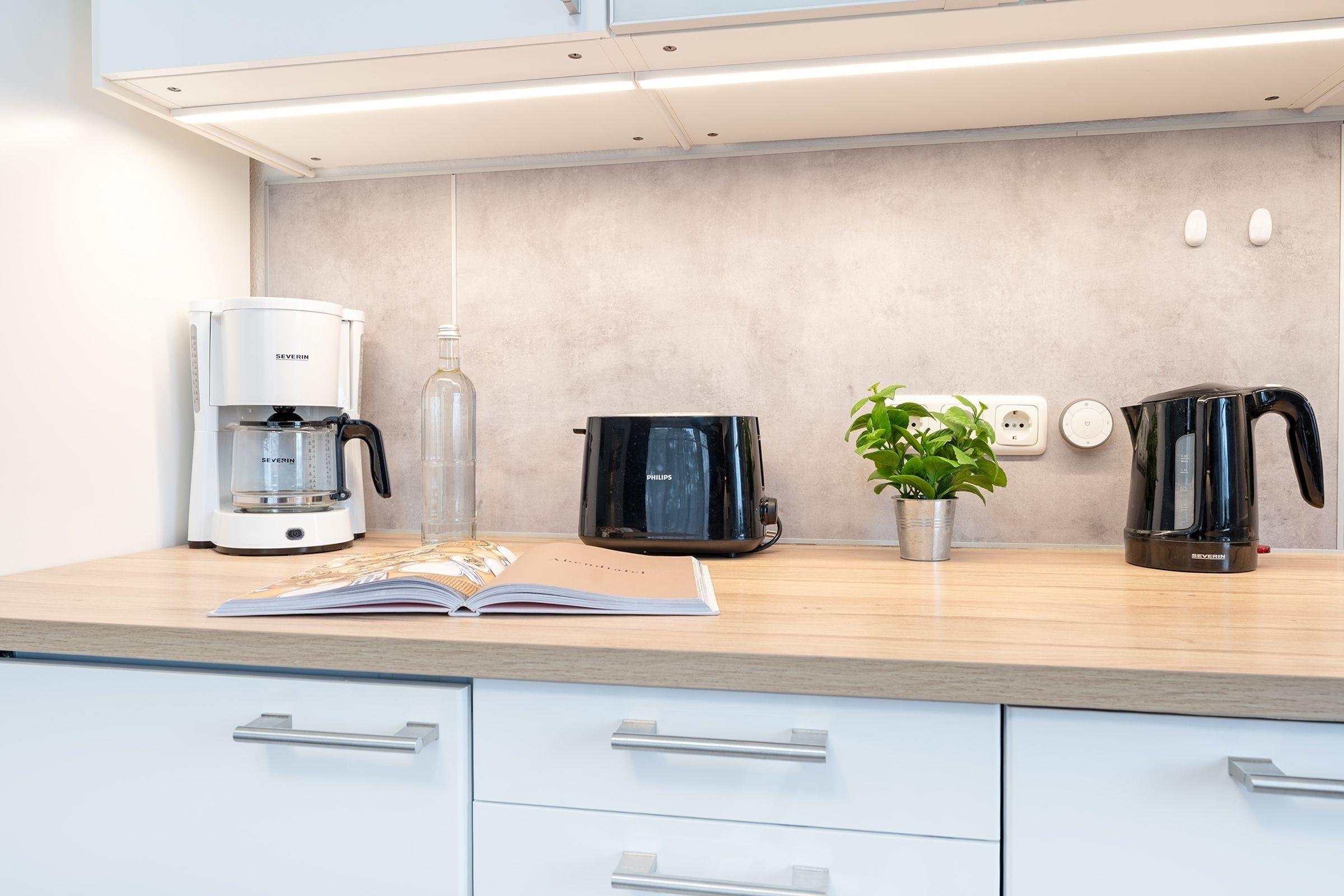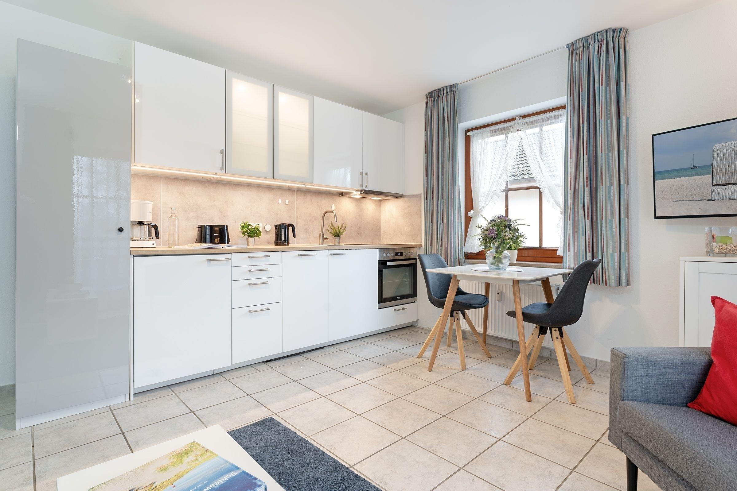 In Ihrem Urlaubsdomizil erwartet Sie ein ansprechender Wohn-/Schlafraum, der mit einem Essplatz und einer integrierter Küchenzeile ausgestattet ist. Zur Nacht lässt sich die Couch ganz einfach in einen bequemen Schlafbereich (140x200 cm) für 2 Personen verwandeln. Von hier aus gelangen Sie auch auf den großzügigen Balkon, der zu entspannten Stunden an der frischen Luft einlädt. Die morgendliche Dusche können Sie im modernen Tageslichtbad ausgiebig genießen. Zum Strand sind es ca. 5 Gehminuten.