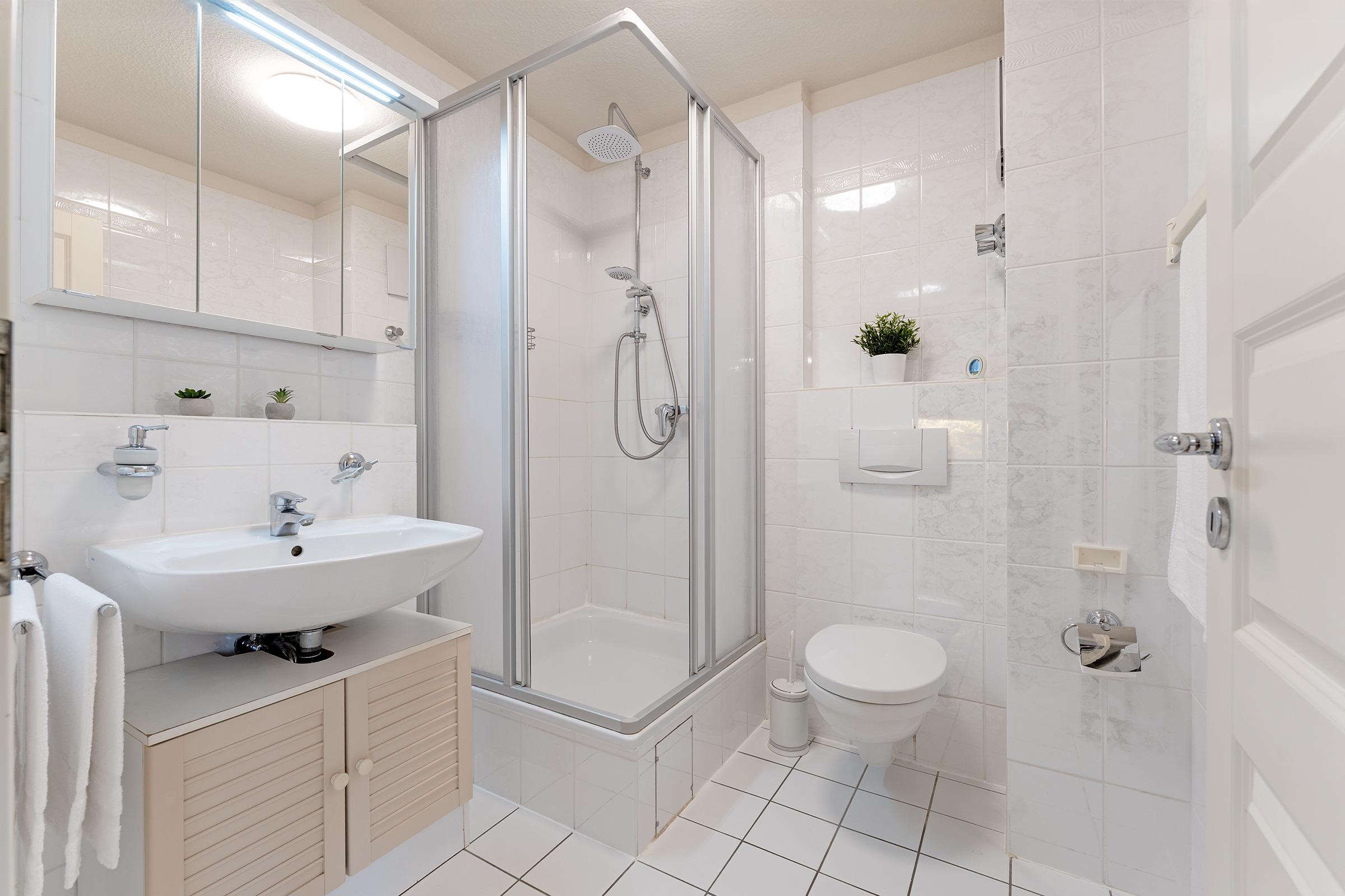 Ein PKW-Tiefgaragenstellplatz ist für Sie reserviert. Ein kostenfreier WLAN-Anschluss ist für Sie inklusive. Zudem befindet sich im Haus eine Gemeinschafts-Waschküche mit Waschmaschine und Trockner.