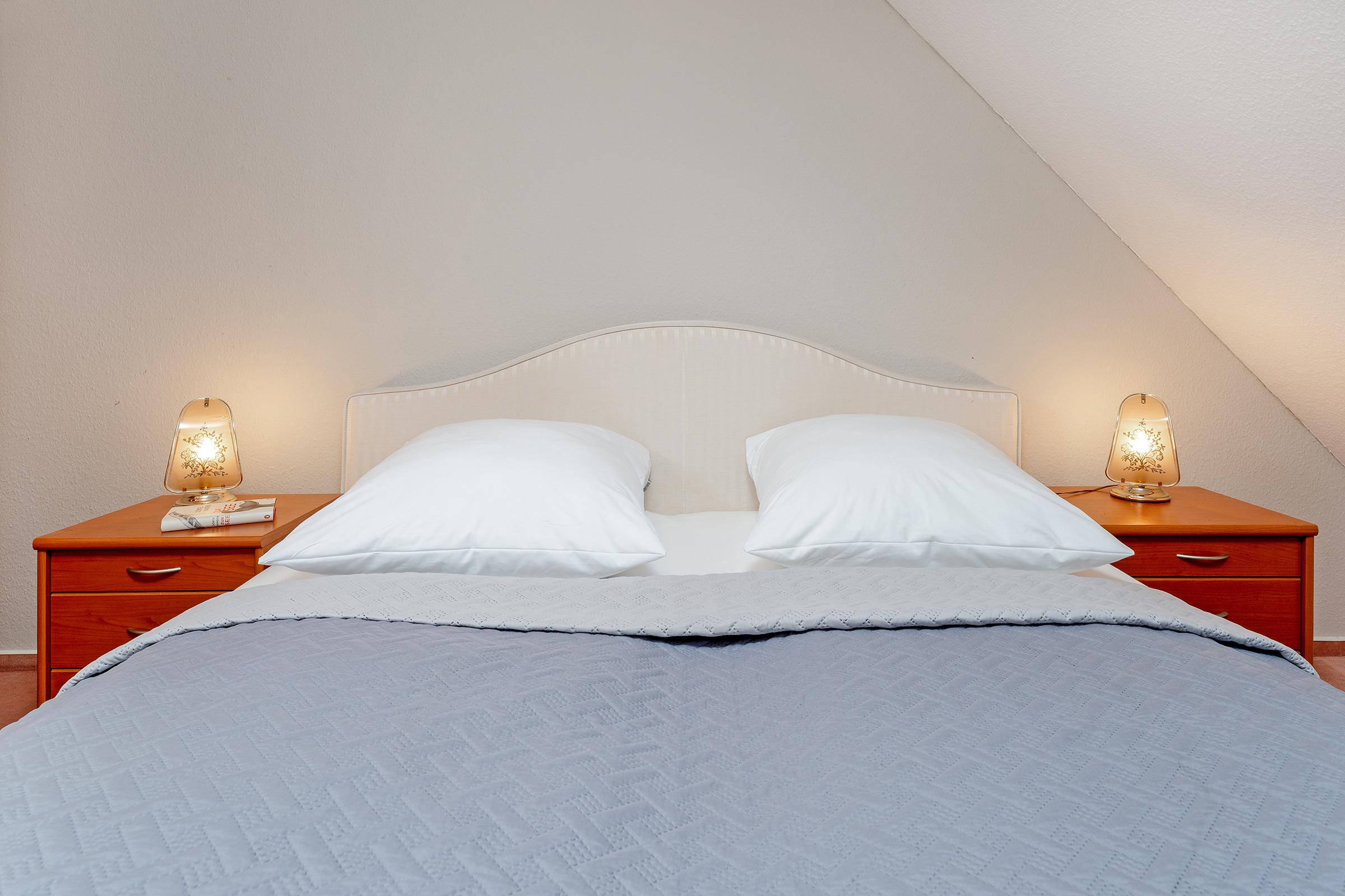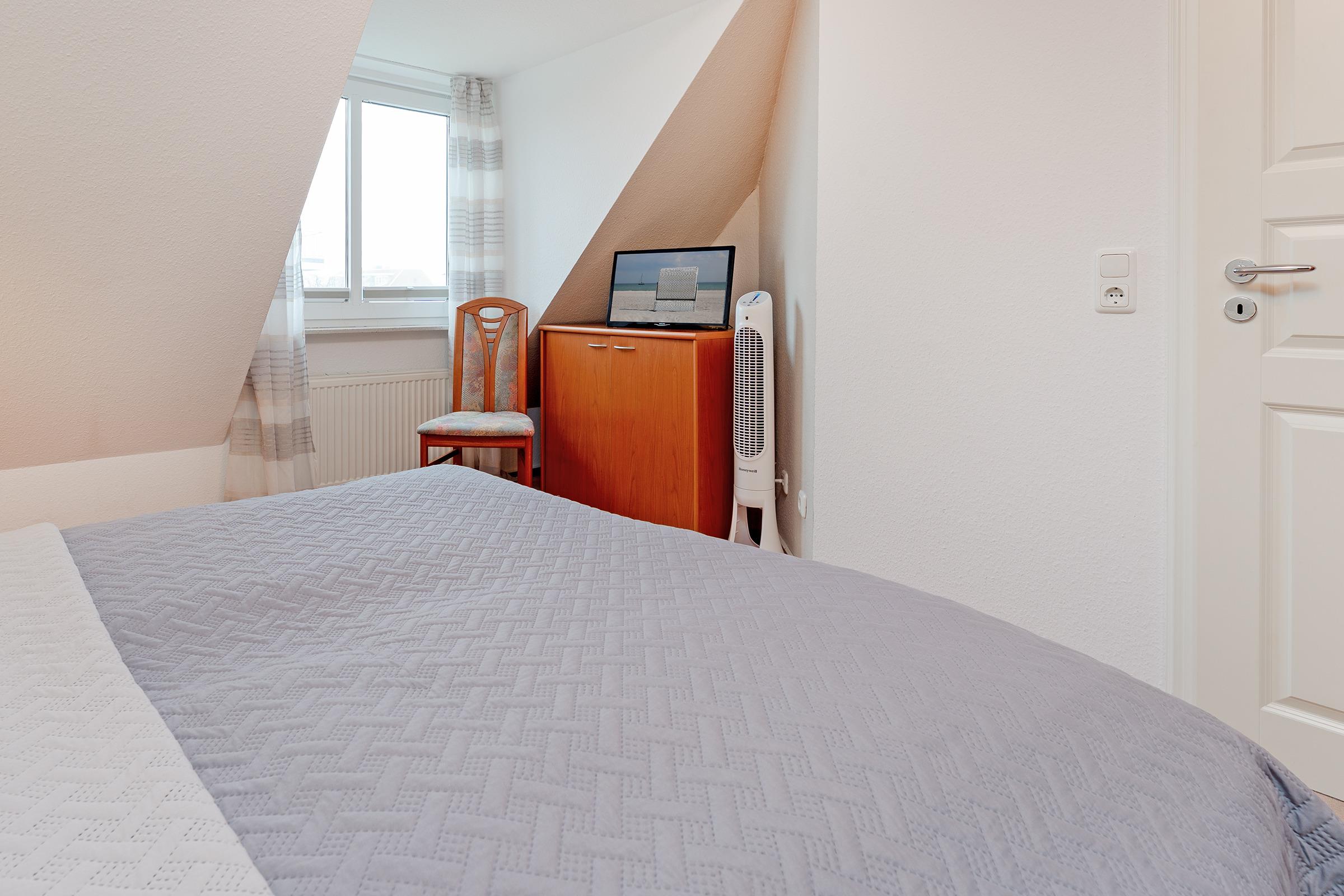 Schlafzimmer: 1 Doppelbett (180x200 cm), Kleiderschrank, Verdunkelungsmöglichkeit
