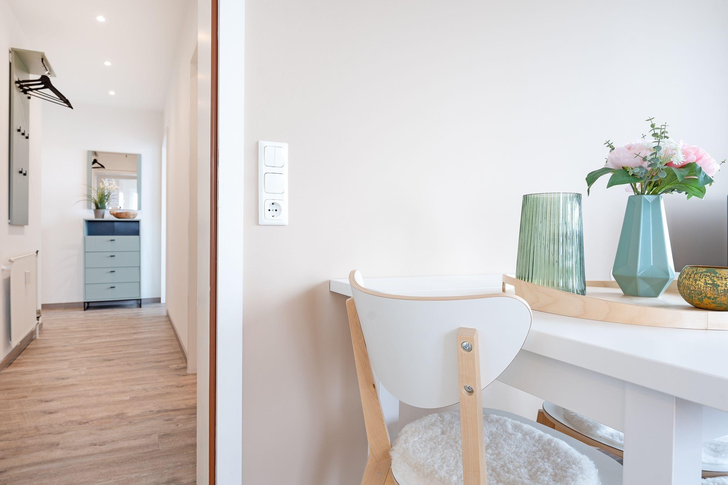 Zu dieser Wohnung gehört ein PKW-Außenstellplatz. Außerdem befindet sich im Haus eine Gemeinschafts-Waschküche mit Waschmaschine und Trockner.
