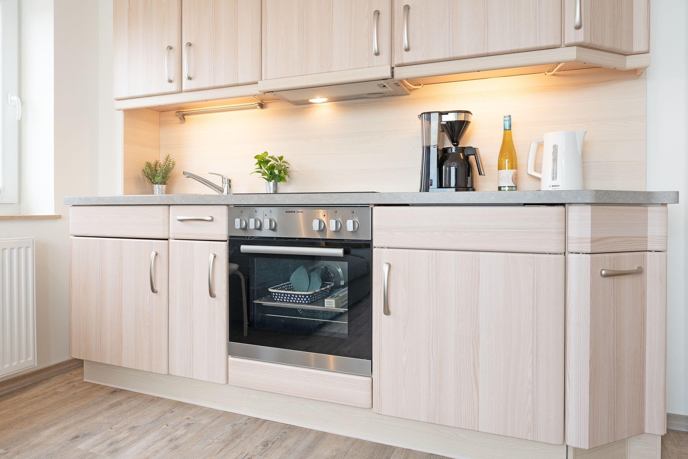 Im Wohnraum befindet sich eine gemütliche Couchgarnitur, welche sich zu einem vollwertigem Doppelbett (140x200 cm) ausklappen lässt. Außerdem finden sie hier eine Musikanlage, einen modernen Smart-TV und einen kostenlosen WLAN-Anschluss. Das Schlafzimmer mit großzügigem Doppelbett (2x 80x200 cm) verfügt über eine eigene Loggia in Richtung Sonne. Die neuwertige Küchenzeile ist ausgestattet mit Kühlschrank mit Gefrierfach, 4-Plattenherd, Kaffeemaschine, Wasserkocher und Toaster. Das Badezimmer ist modern und geschmackvoll gestaltet und begeistert unter anderem mit einer geräumigen Dusche mit bodentiefem Einstieg. Der möblierte Balkon bietet über das Dach hinweg einen seitlichen Meerblick, lassen Sie den Blick in Richtung Dünenmeile streifen und lauschen dem Klang der Wellen und Möwen.