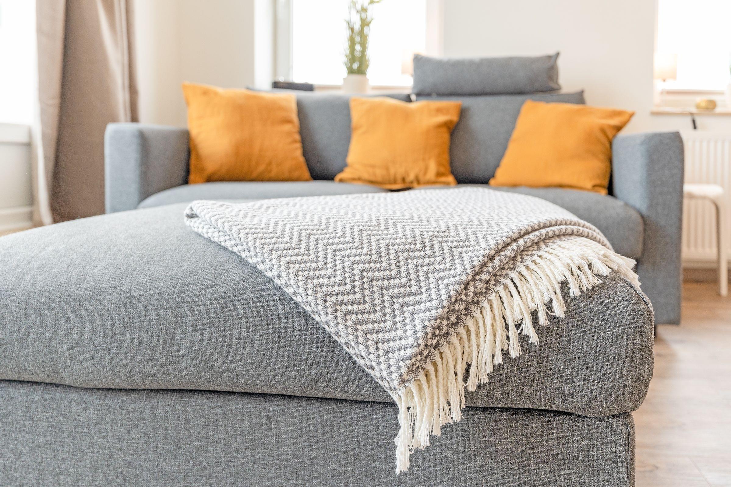 Wohnzimmer: 1 Schlafsofa (140x200 cm), Verdunklung (Gardinen)