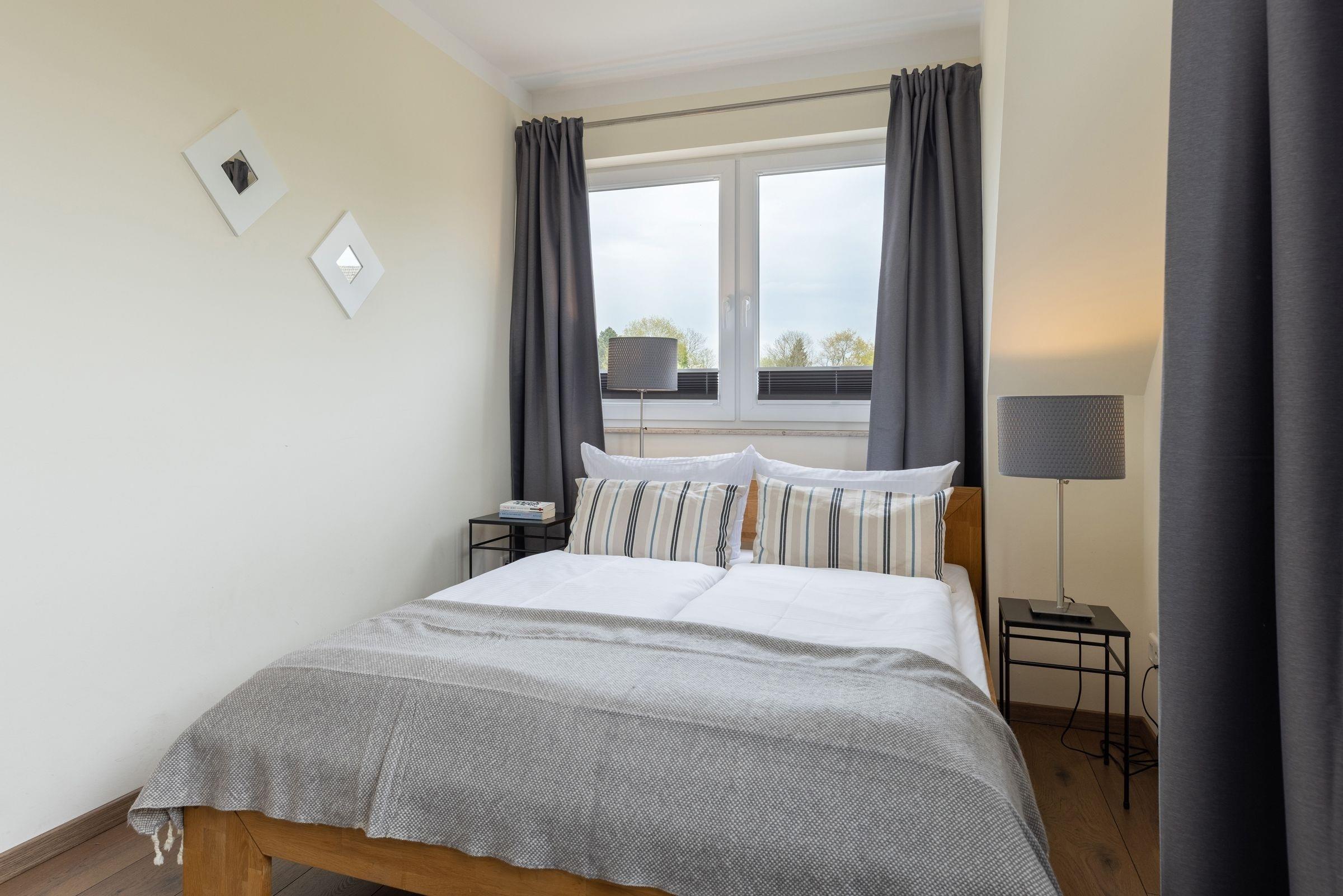 Schlafzimmer 2: 1 Doppelbett (2x 90x200 cm), Kleiderschrank, Verdunkelung (Plissees)