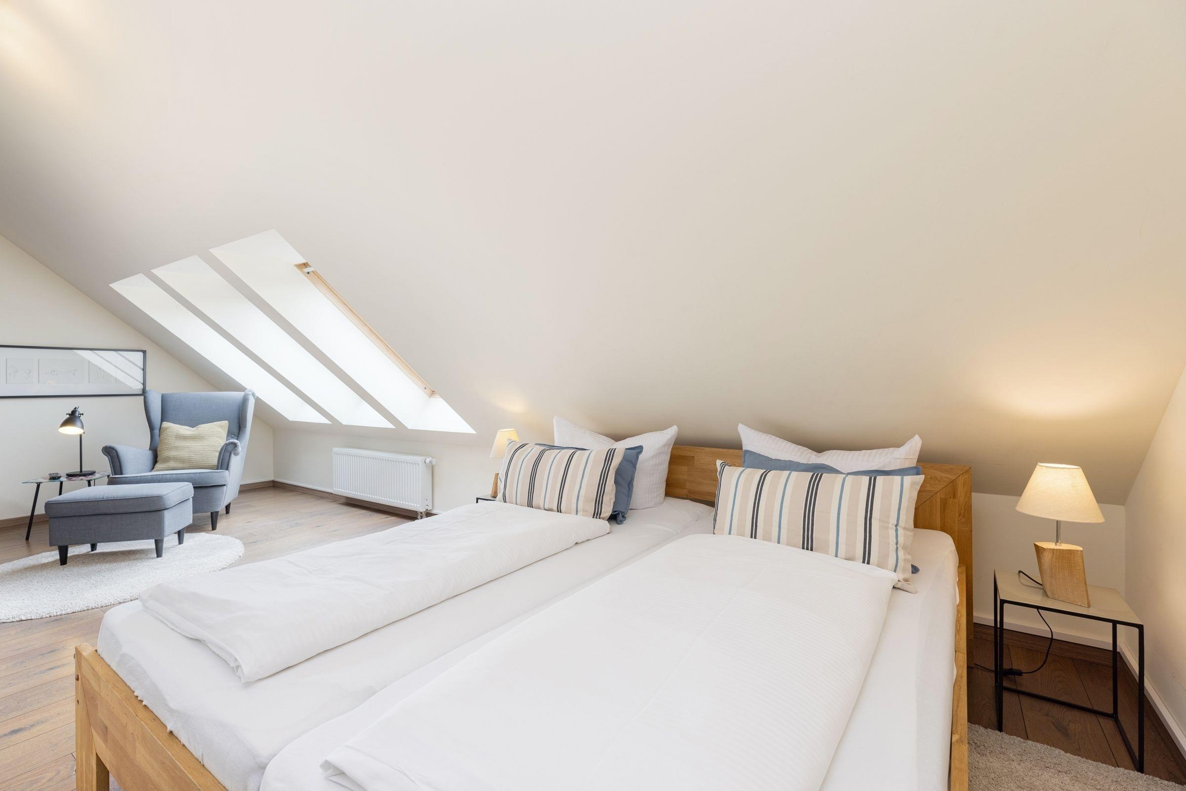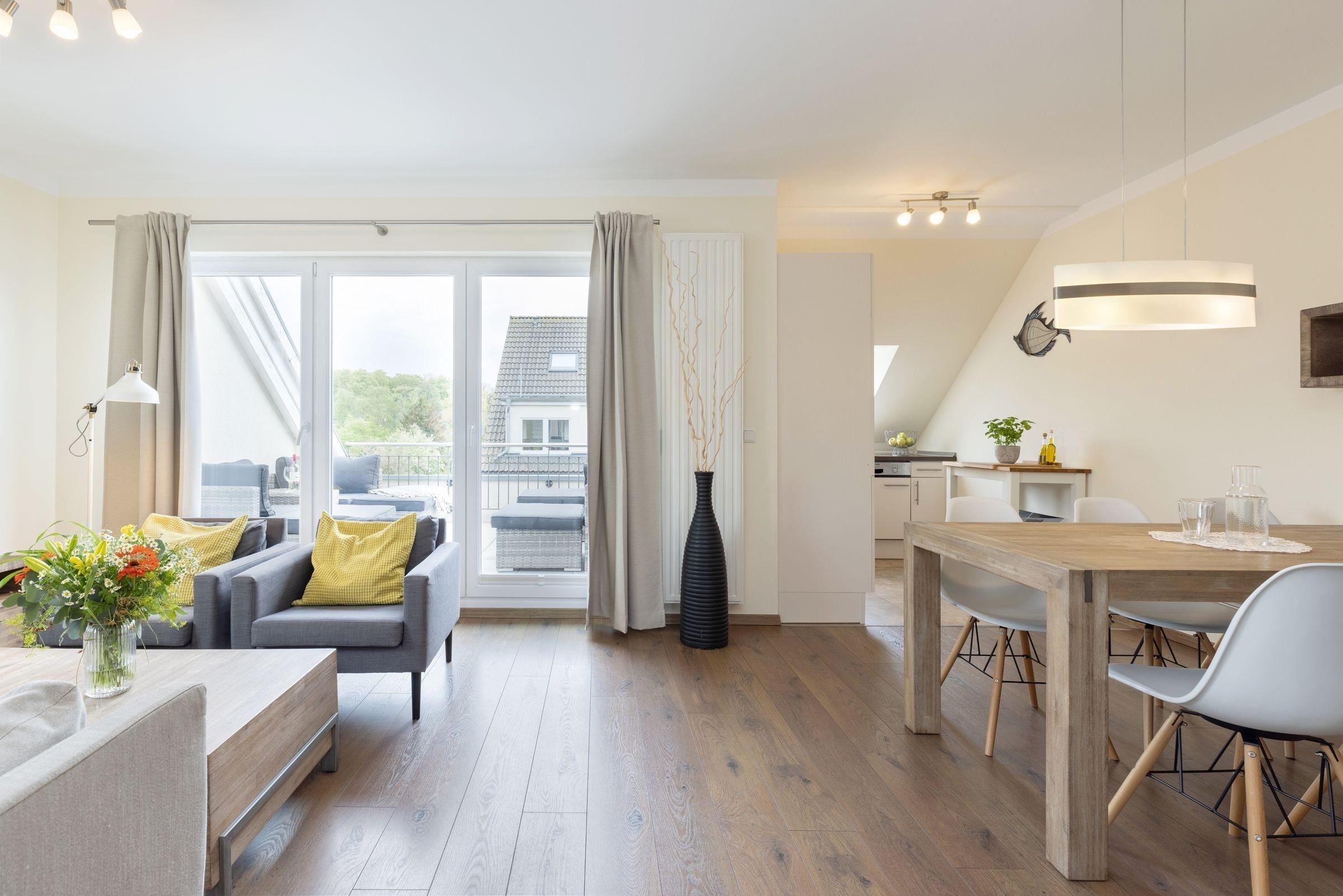 Dieses komfortable 4-Zimmer-Appartement erstreckt sich über 2 Etagen, hat ca. 90 m² und bietet Platz für bis zu 6 Personen. Es ist modern, geschmackvoll und stilsicher eingerichtet.
