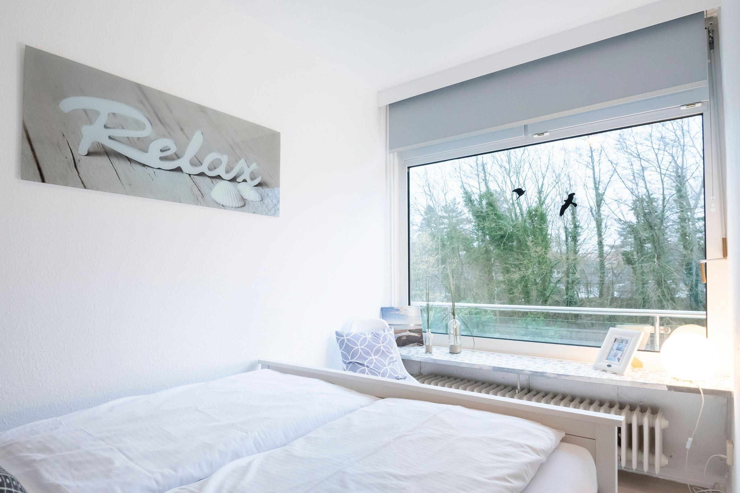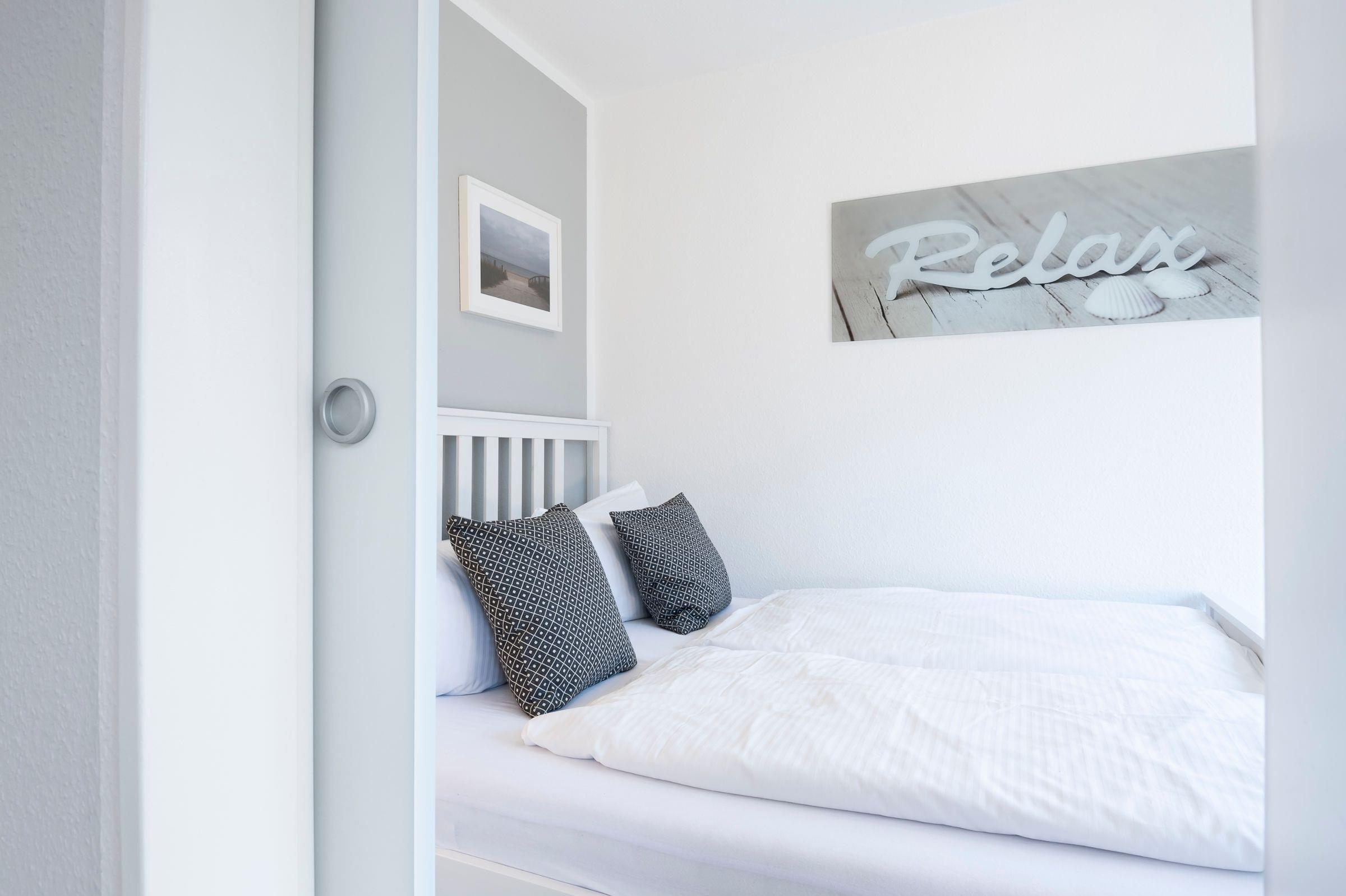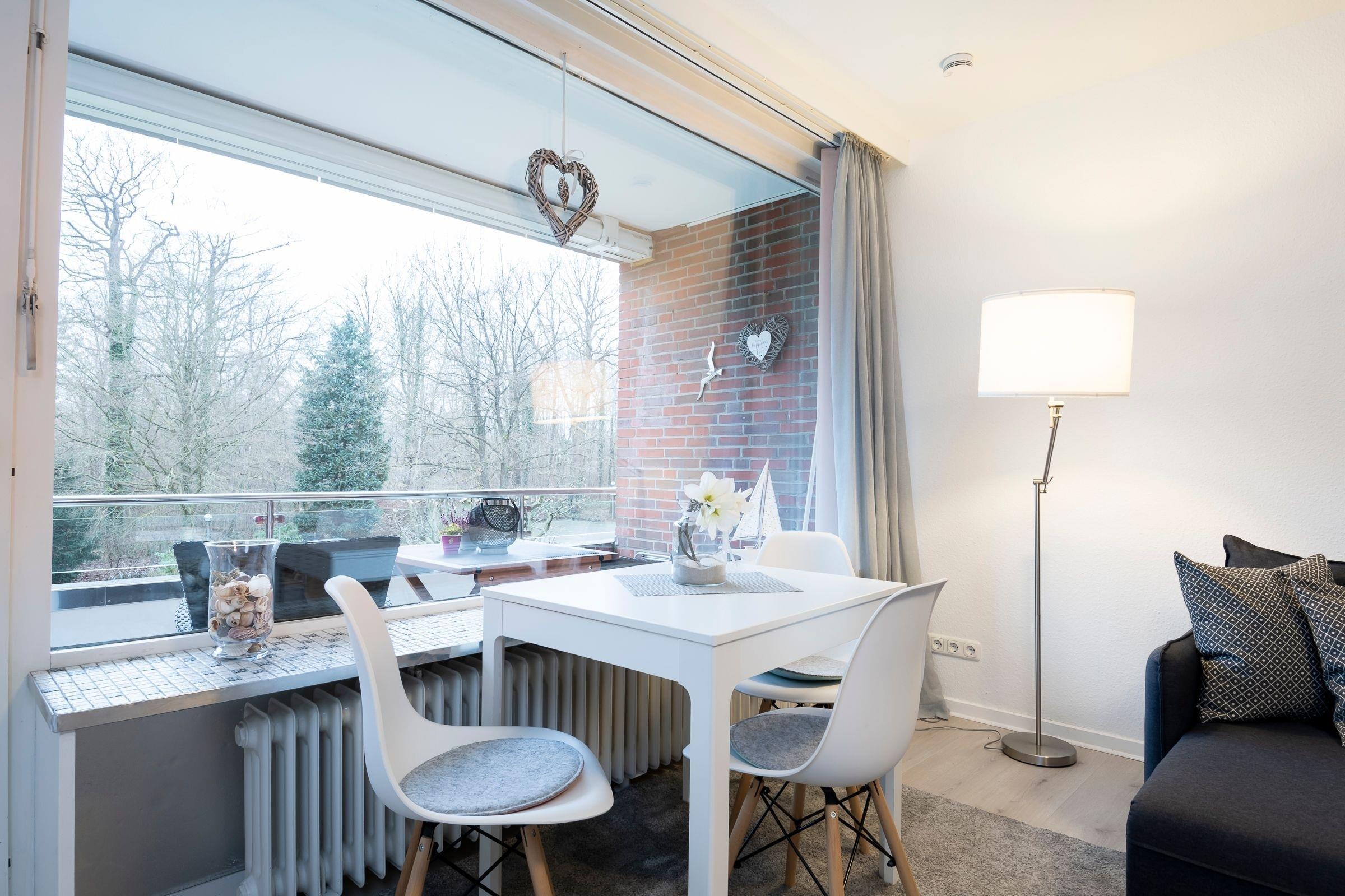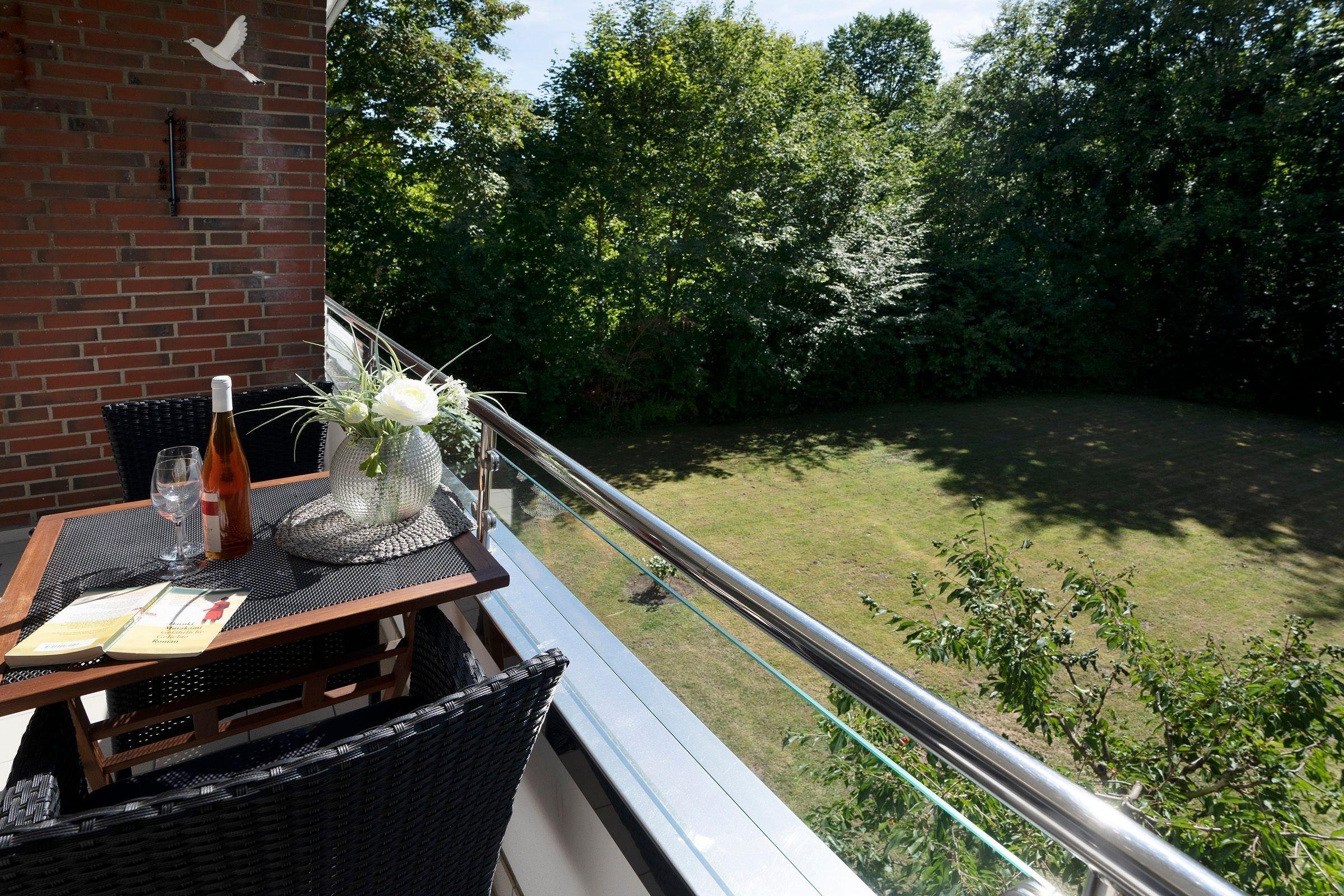 Bequem parken Sie Ihren PKW hinter dem Appartementhaus, jetzt sind es nur noch ein paar Schritte bis zu Ihrem Urlaubsdomizil. Mit dem Fahrstuhl oder über das Treppenhaus gelangen Sie in der Ferienwohnung. Sie öffnen die Wohnungstür und sind gleich in Ihrer modernen Küche. Die separate gut ausgestattete Küche lässt Sie problemlos kleinere Gerichte zuzubereiten. Hier sorgen Alltagshelfer wie Mikrowelle und Spülmaschine für gute Laune, zudem gibt es zusätzlich zur regulären Kaffeemaschine eine Kaffee-Kapselmaschine für frische Kaffeevariationen zum Frühstück. Das Duschbad liegt rechts neben dem Flur. Der Wohn- und Schlafbereich ist mit einem Schrankbett (für 1 Person), Sessel, Sofa und einen Essbereich eingerichtet. Von hier aus haben Sie einen Blick ins Grüne, können Ihr Frühstück auf dem Balkon genießen oder es sich an lauschigen Sommerabenden mit einem Buch gemütlich machen. In Ihrem Schlafzimmer erwartet Sie ein Doppelbett (160x200 cm), dort können Sie ungestört träumen. Verdunklungsplissees dunkeln das Schlafzimmer ausreichend ab.
