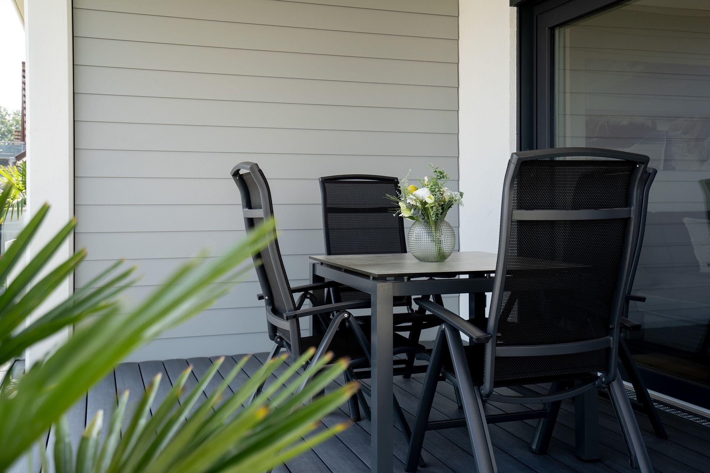 Ein PKW-Außenstellplatz ist für Sie reserviert, Ihre Fahrräder können Sie im Außenbereich in einem abschließbaren Fahrradschuppen abstellen. Ihre Wäsche können Sie in der Waschmaschine waschen, die sich direkt in der Wohnung befindet. Ein Kinderhochstuhl steht Ihnen ebenfalls kostenfrei zur Verfügung.