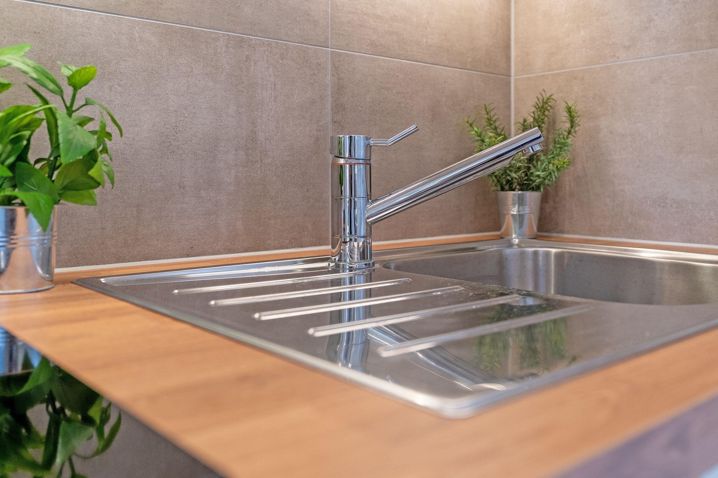 Im kombinierten Wohn- und Schlafraum finden Sie Ruhe im Doppelbett (2x 80x200 cm) oder auf dem Schlafsofa (120x195 cm). Das angrenzende Badezimmer bietet Ihnen ein Rundum-Wohlfühlpaket mit bodengleicher Dusche und Haartrockner. In der vom Eingangsbereich abgehenden, offenen Küche finden Sie neben einem Kühlschrank mit Gefrierfach und Toaster unter anderem auch ein Kombigerät mit Mikrowelle- und Backofenfunktion.