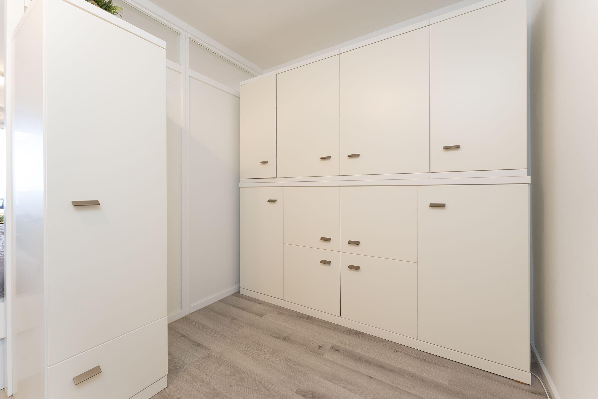 Wohn/Schlafraum: 1 Doppelbett (2x 90x200 cm) + 1 Schrankbett (90x200 cm), TV, Kleiderschrank, Verdunkelung: Raffstore, Platz für Babybett vorhanden