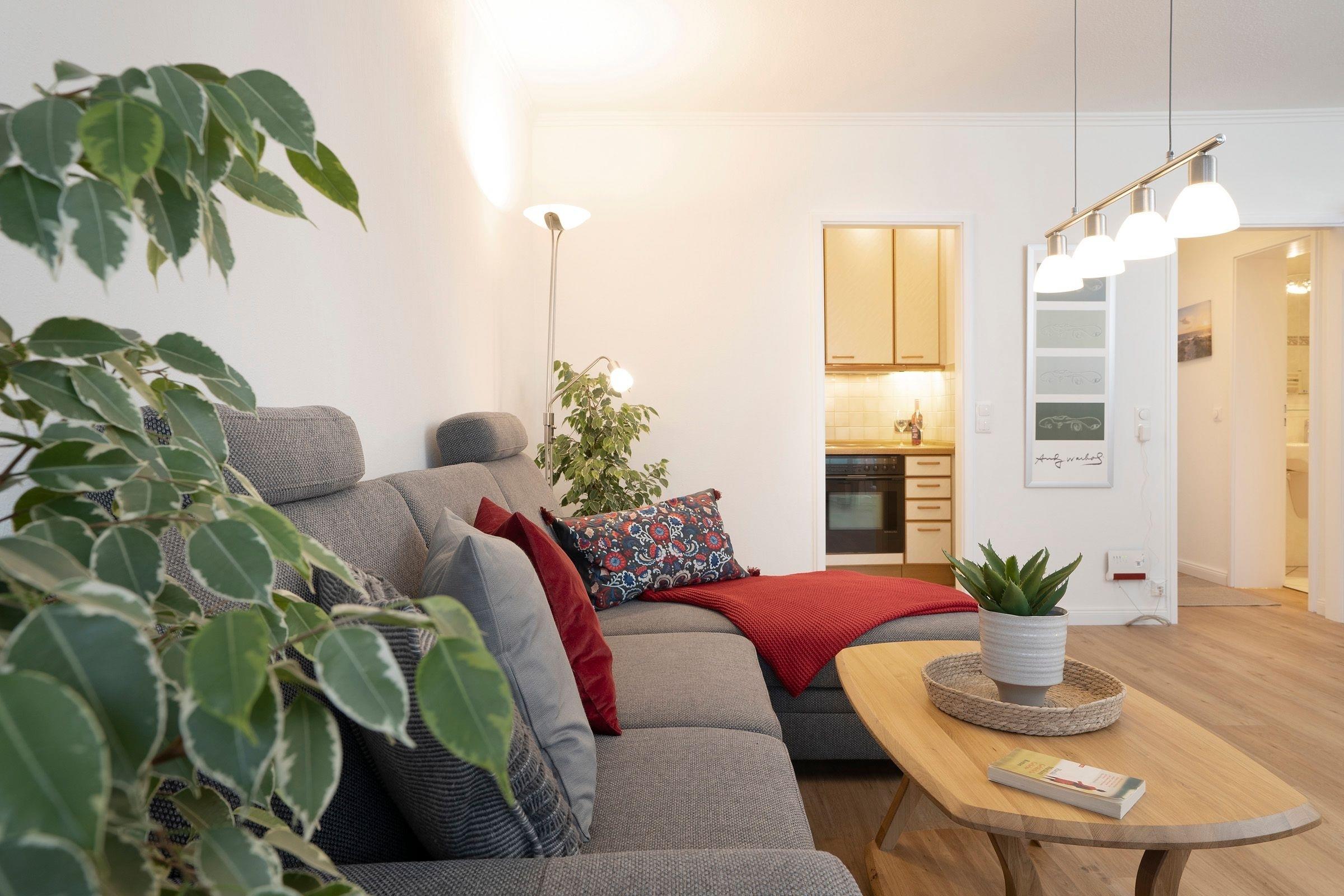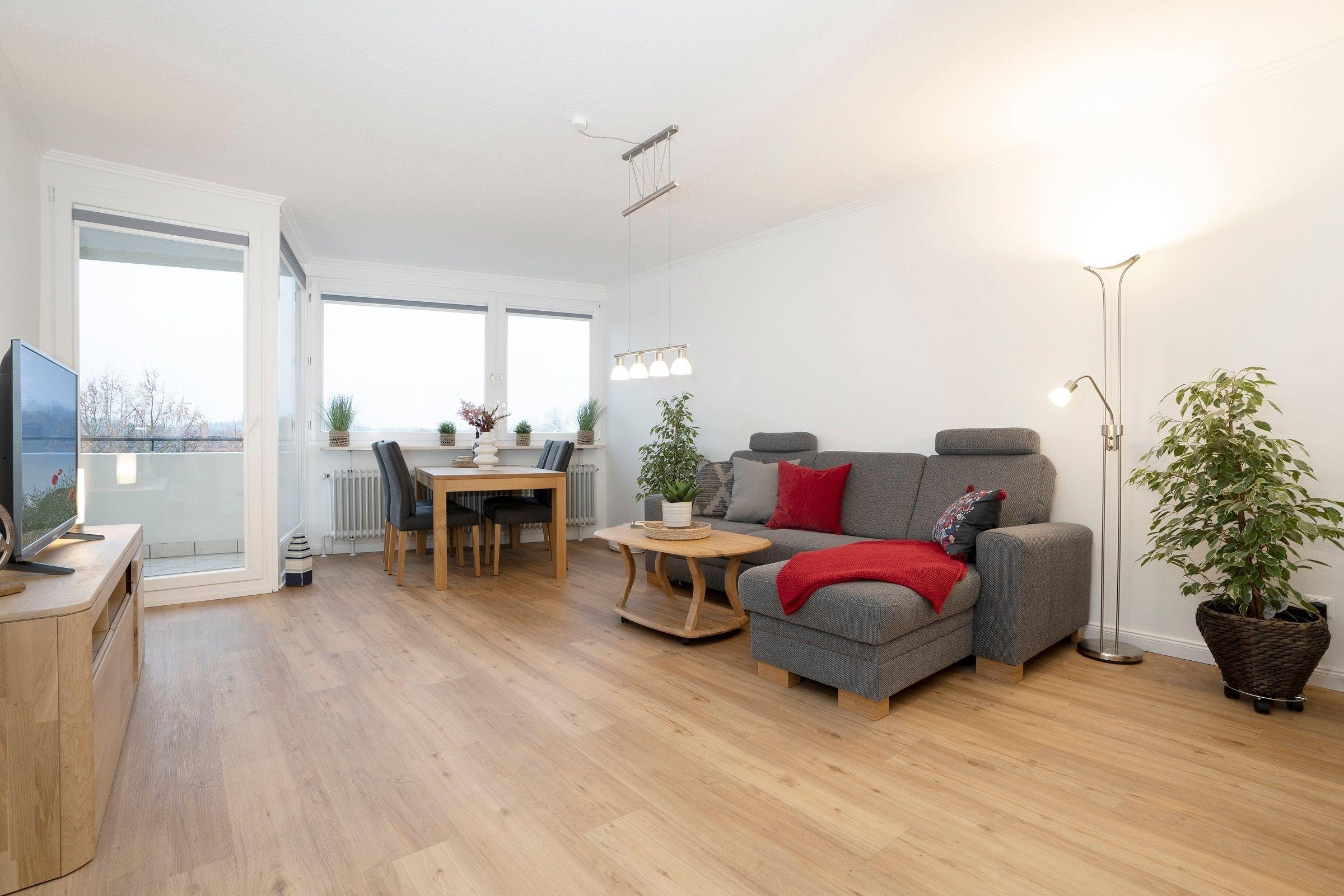 Das Herzstück dieser Wohnung bildet der offene Wohnbereich mit gemütlichem Ecksofa und großzügigem Esstisch. Während Sie dort Ihr Abendessen genießen, können Sie Ihren Blick über die Dächer von Scharbeutz schweifen lassen oder es sich auf dem Balkon gemütlich machen. Das angrenzende Schlafzimmer bietet einen großen Kleiderschrank für Ihre Urlaubsgarderobe und ein Doppelboxspringbett (2x 90x200 cm). Für einen erfolgreichen Start in den Urlaubstag können Sie sich in der praktischen Küche, die mit allen wichtigen Basics ausgestattet ist, ein Strandpicknick vorbereiten und sich im hell gefliesten Vollbad erfrischen. Bitte beachten Sie, dass es sich bei dem Gerät im Badezimmer um die Spülmaschine und nicht um eine Waschmaschine handelt.