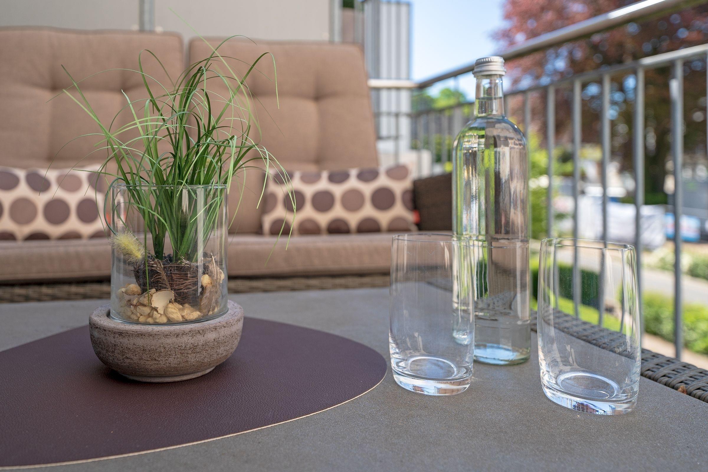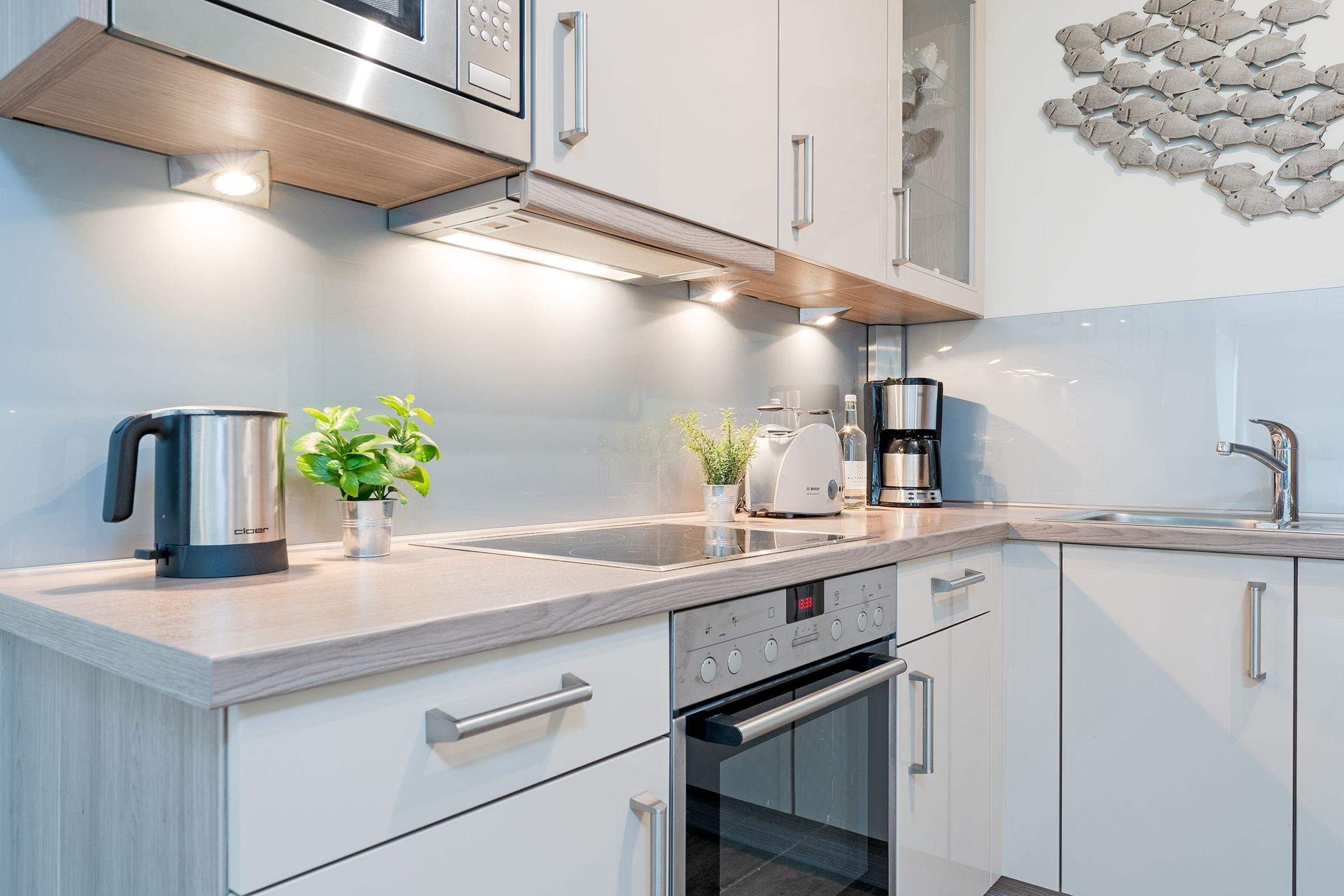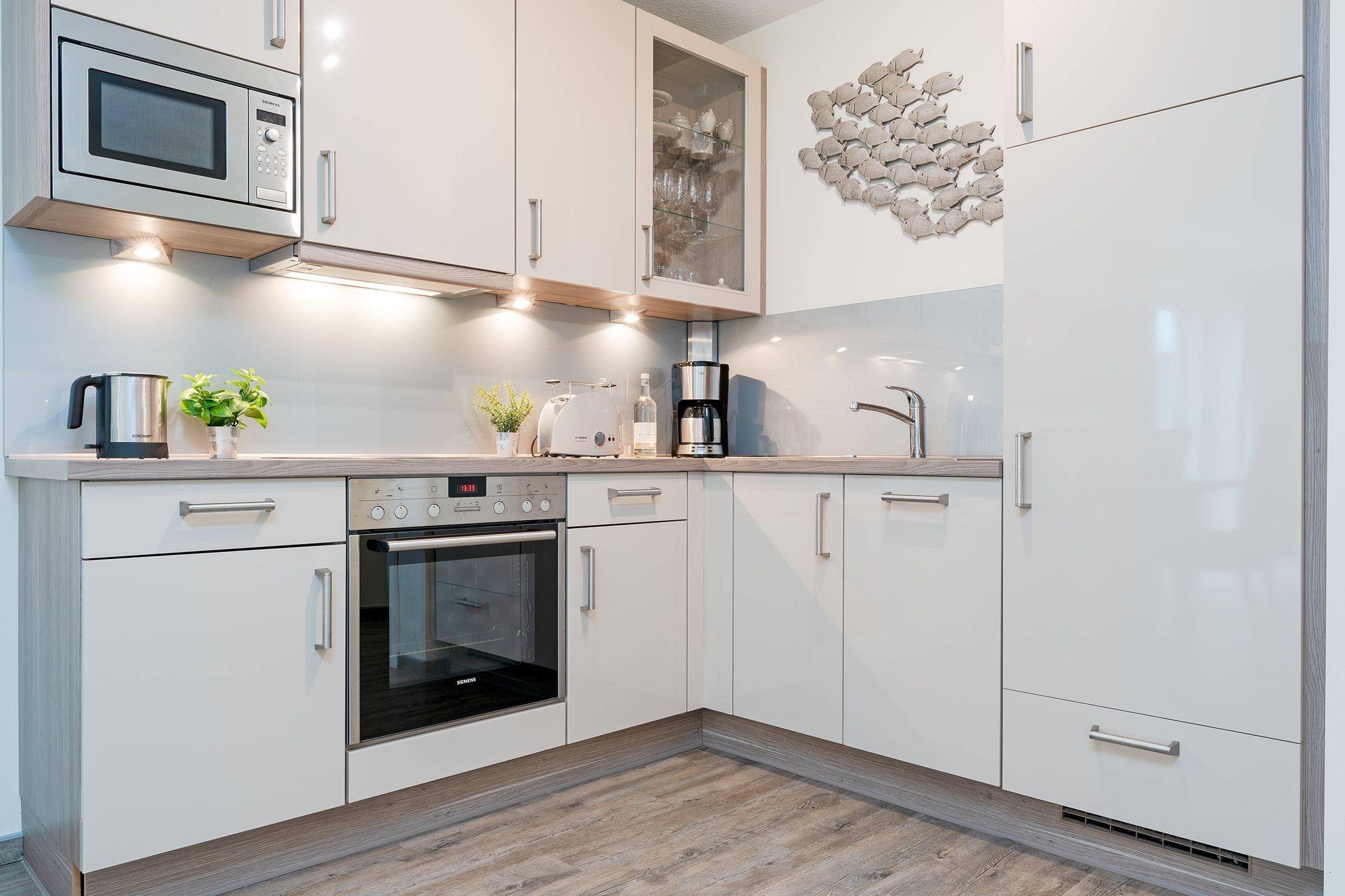 Sie verbringen gern Ihre Auszeit an der frischen Luft? Dann sind Sie in dieser wunderbaren Ferienwohnung genau richtig – denn diese verfügt über zwei möblierte Balkone. Sie haben die Wahl! Aber kommen Sie erst einmal herein in den liebevoll eingerichteten Wohnbereich. Nehmen Sie Platz – für Unterhaltung ist gesorgt mit einem TV-Gerät sowie einem DVD- und CD-Spieler. Und für den Abend wartet eine Spielesammlung auf Sie. Auch die moderne Ausstattung der Küche wird Sie begeistern: vom Induktionsherd über die Mikrowelle bis hin zur Spülmaschine sind sämtliche Extras vor Ort. Abends können Sie das Sofa im Wohnbereich in ein bequemes Doppelbett (ca. 160x195 cm) verwandeln. Oder Sie machen es sich im Schlafzimmer im Doppelbett (2x 90x200 cm) gemütlich. Hier steht ein zusätzliches TV-Gerät. Das innenliegende Duschbad verspricht den Komfort, den man sich im Urlaub wünscht.