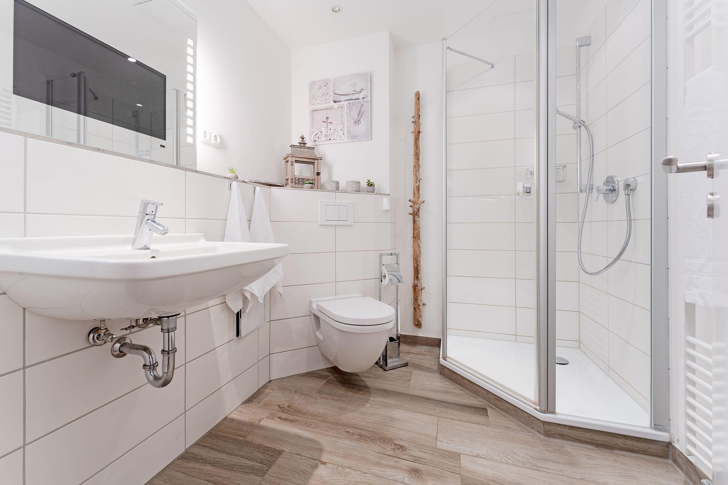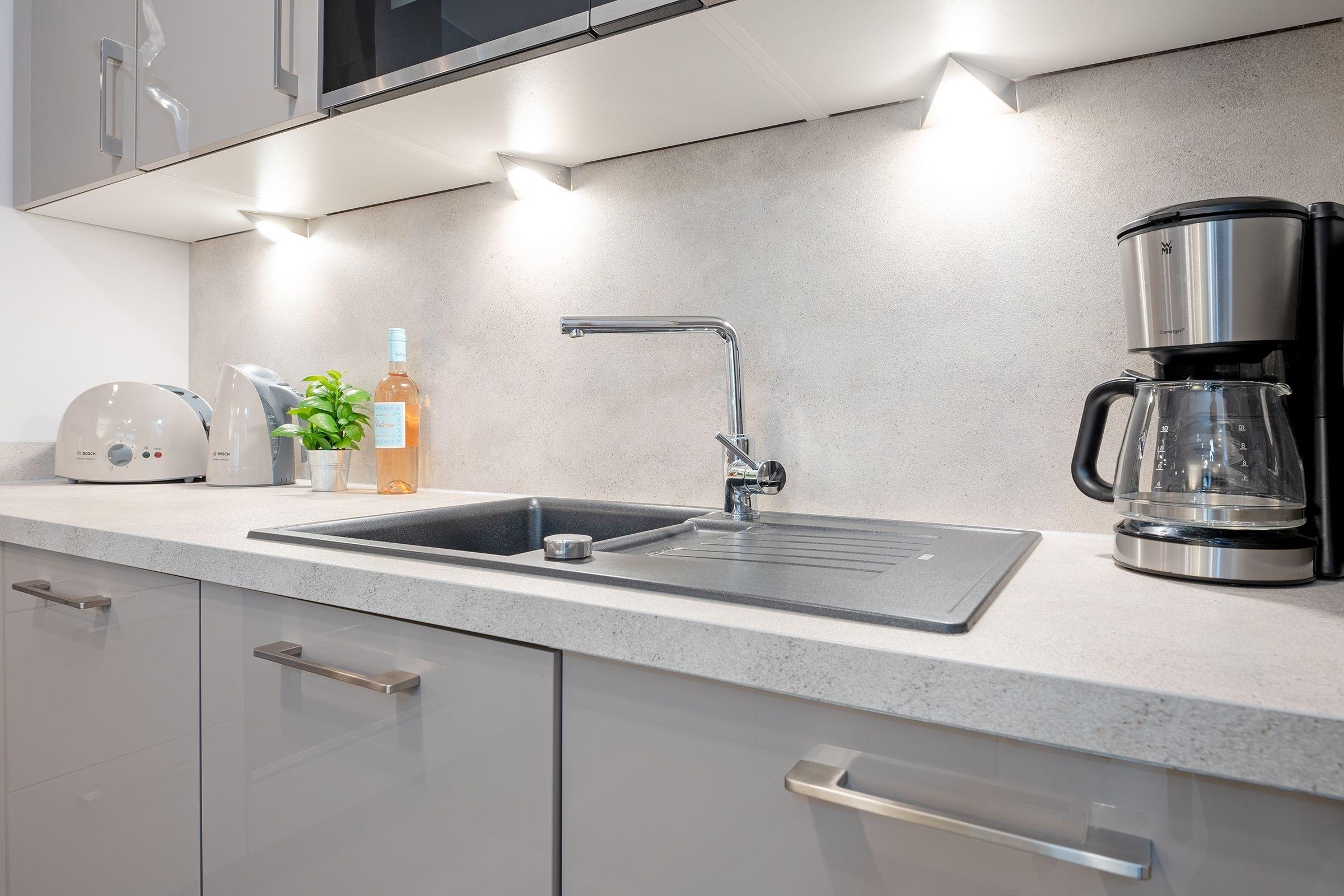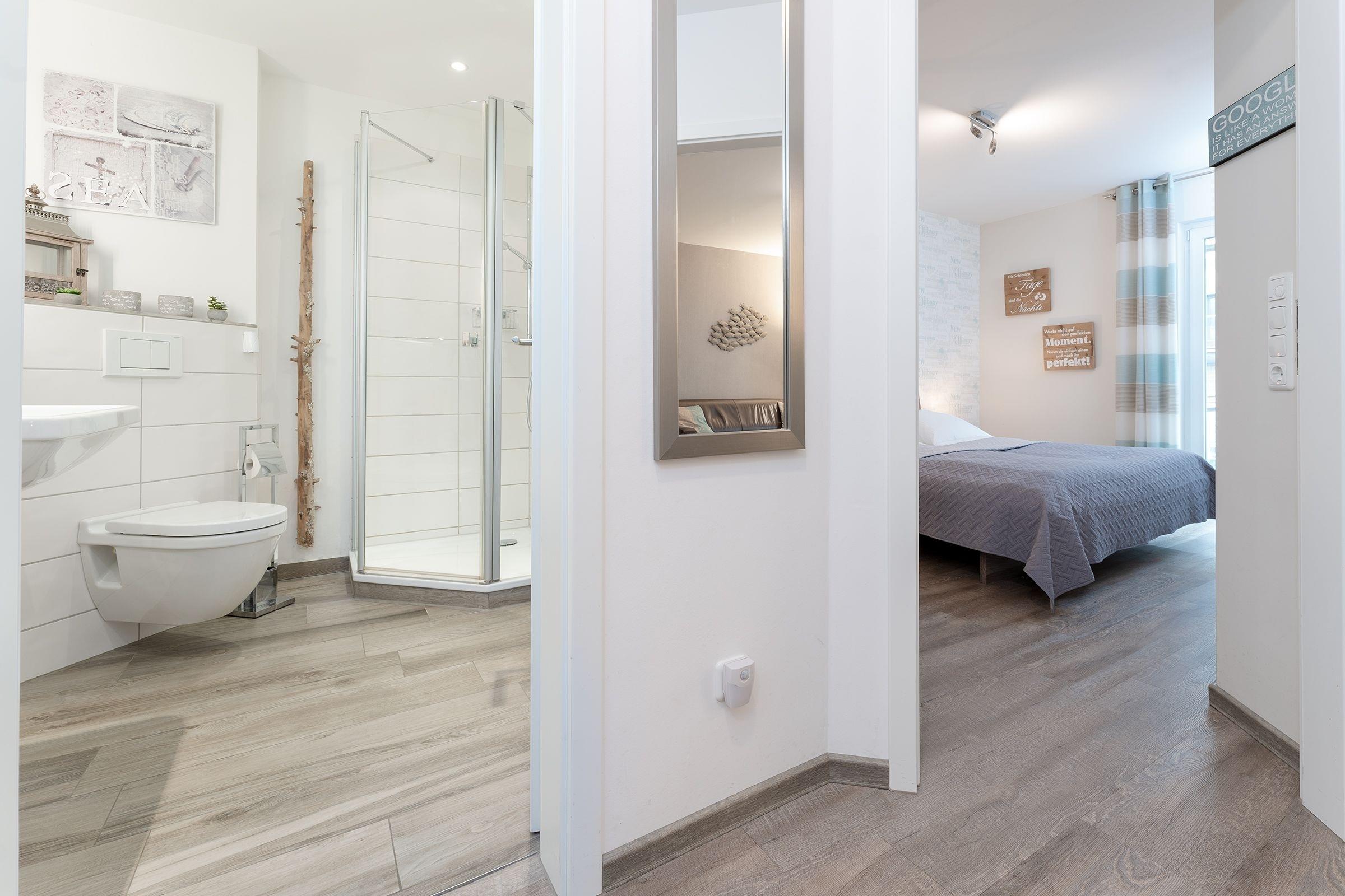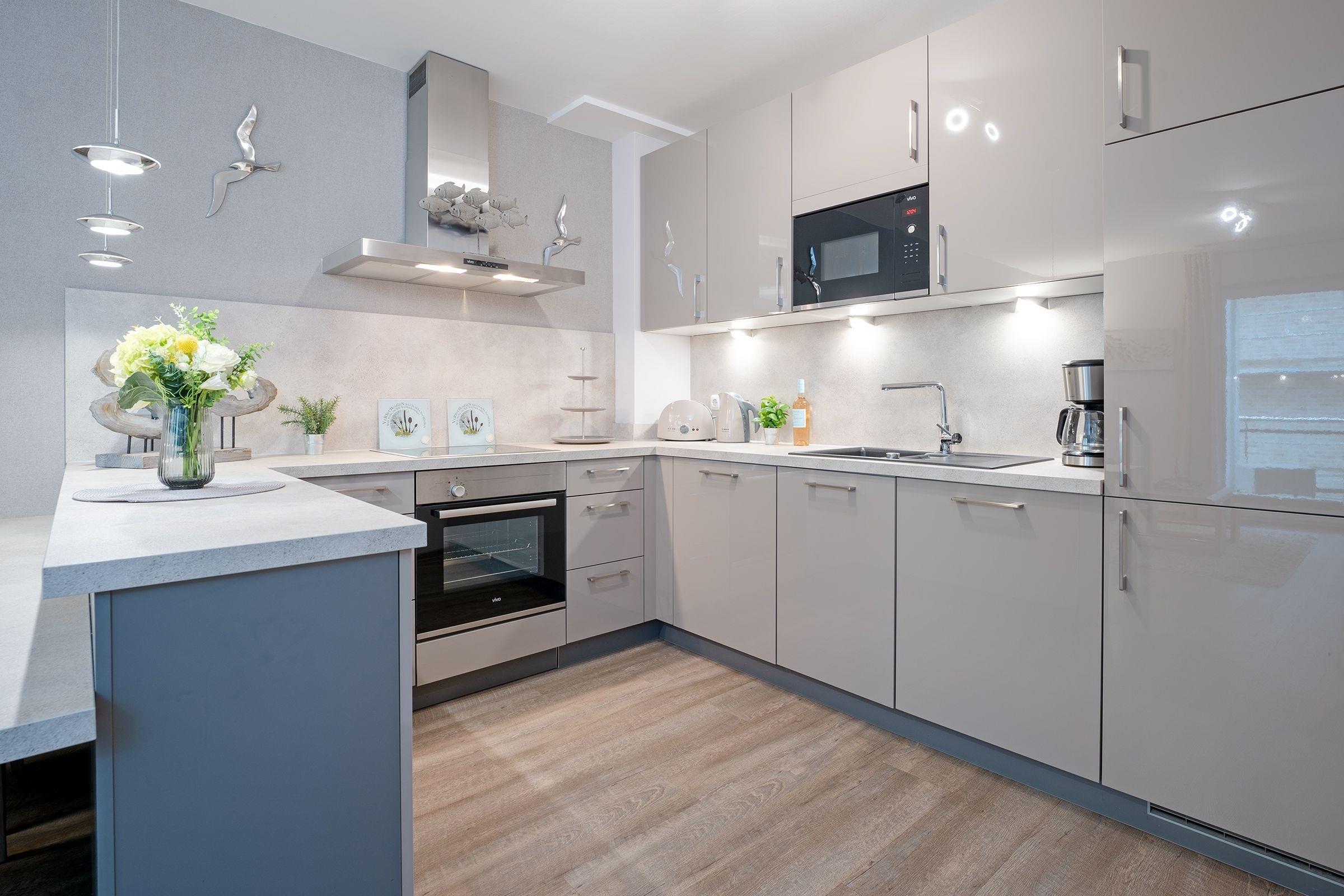 Ihr Urlaub startet schon vor Betreten Ihrer Ferienwohnung - der Aufzug bringt Sie und Ihr Gepäck bequem in den 1. Stock. Treten Sie ein in den hell gestalteten Wohnbereich und machen Sie es sich auf dem Sofa gemütlich. Dieses lässt sich im Handumdrehen für die Nacht in ein bequemes Bett (160x195 cm) für zwei Feriengäste verwandeln. Von hier aus gelangen Sie auch auf den überdachten Balkon mit Süd-Ausrichtung, auf dem Sie Ihre Urlaubstage ausklingen lassen und die letzten Sonnenstrahlen des Tages genießen können. Für gesellige Grillabende an lauen Sommerabenden steht Ihnen sogar ein elektrischer Tischgrill zur Verfügung. Die zum Wohnbereich hin offen gestaltete Küche lässt mit ihrer guten Ausstattung bis hin zum Raclettegerät keine kulinarischen Wünsche offen. Ihre Nachtruhe finden Sie im separaten Schlafzimmer mit komfortablen Doppelbett (2x 90x200 cm), das mit den Außenjalousien für erholsame Stunden sorgt. Abgerundet wird Ihre Ferienwohnung durch das innenliegende Badezimmer, das mit einem Spiegel mit integriertem Radio und TV überzeugt. Gönnen Sie sich eine wohltuende Dusche während Sie Ihrem Lieblingsradiosender lauschen, um erfrischt in den Tag zu starten. Dieses Feriendomizil überzeugt außerdem mit einer Fußbodenheizung, die Ihnen auch an kälteren Tagen gemütliche Urlaubswärme beschert.