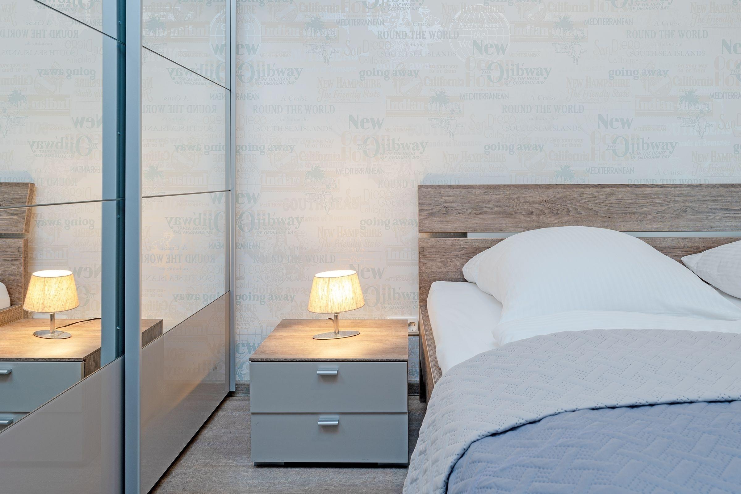 Schlafzimmer: Doppelbett (2x 90x200 cm), Kleiderschrank, Verdunkelung (Außenjalousie, Gardine), Platz für Babybett vorhanden