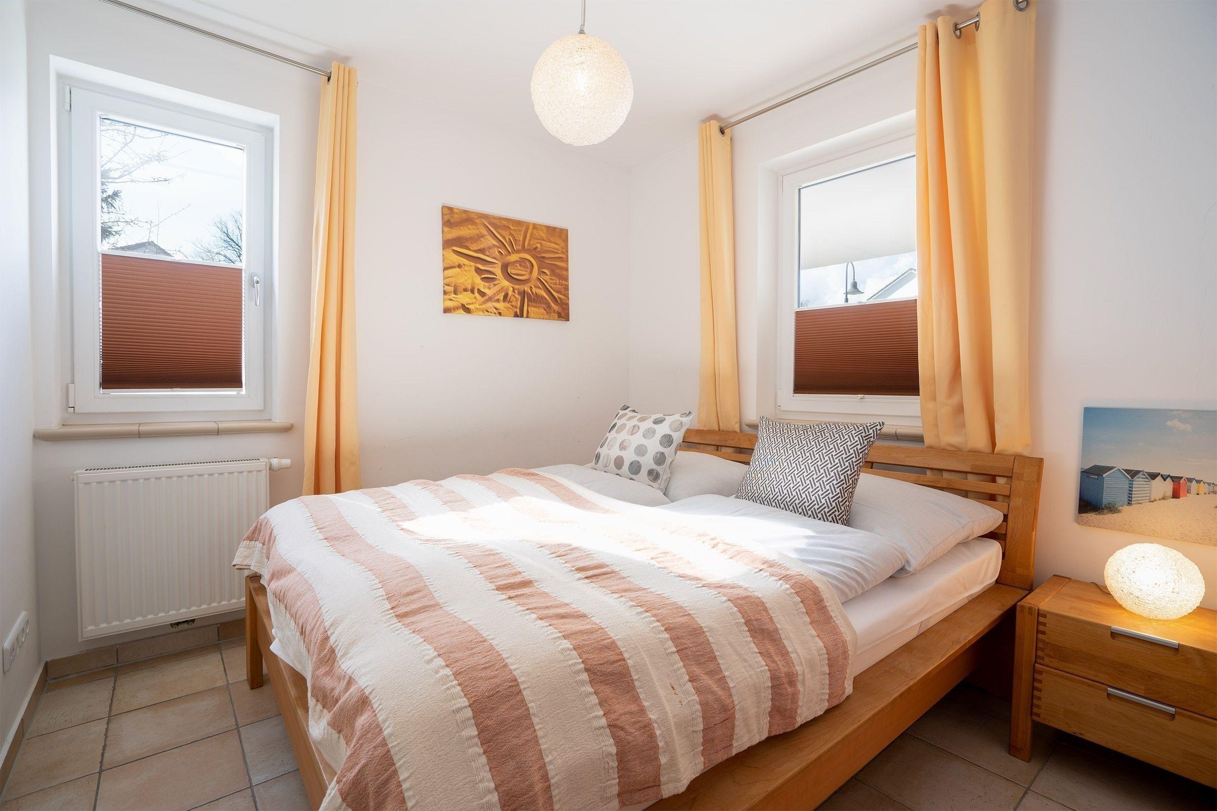 Das hochwertig und geschmackvoll ausgestattete Appartement bietet erstklassigen Wohnkomfort und überzeugt durch eine durchdachte Aufteilung. Der großzügige Eingangsbereich mit Garderobe führt in alle weiteren Räume. Der helle Wohnraum verfügt über ein Ledersofa, Glastisch, Anrichte und einen 48 Zoll Smart TV. Die offene, moderne Einbauküche ist komplett ausgestattet mit Geschirrspüler, Backofen, Mikrowelle und allen erforderlichen Kochutensilien. Ein Essplatz für vier Personen ist ebenfalls vorhanden. Zwei separate Schlafräume sind mit Doppelbetten und Kleiderschränken ausgestattet. Das Badezimmer bietet eine ebenerdige Dusche, Waschtisch und WC, zusätzlich gibt es ein separates Gäste-WC. Kinderfreundliche Ausstattung wie ein Reisebett und Hochstuhl ist ebenfalls vorhanden. Ein PKW-Stellplatz, WLAN und die Nutzung einer Waschmaschine sind inklusive. Fahrräder können im Kellerraum abgestellt werden, sofern Platz verfügbar ist. Das Appartement ist ein Nichtraucherbereich, Hunde sind auf Anfrage gegen Gebühr erlaubt.
