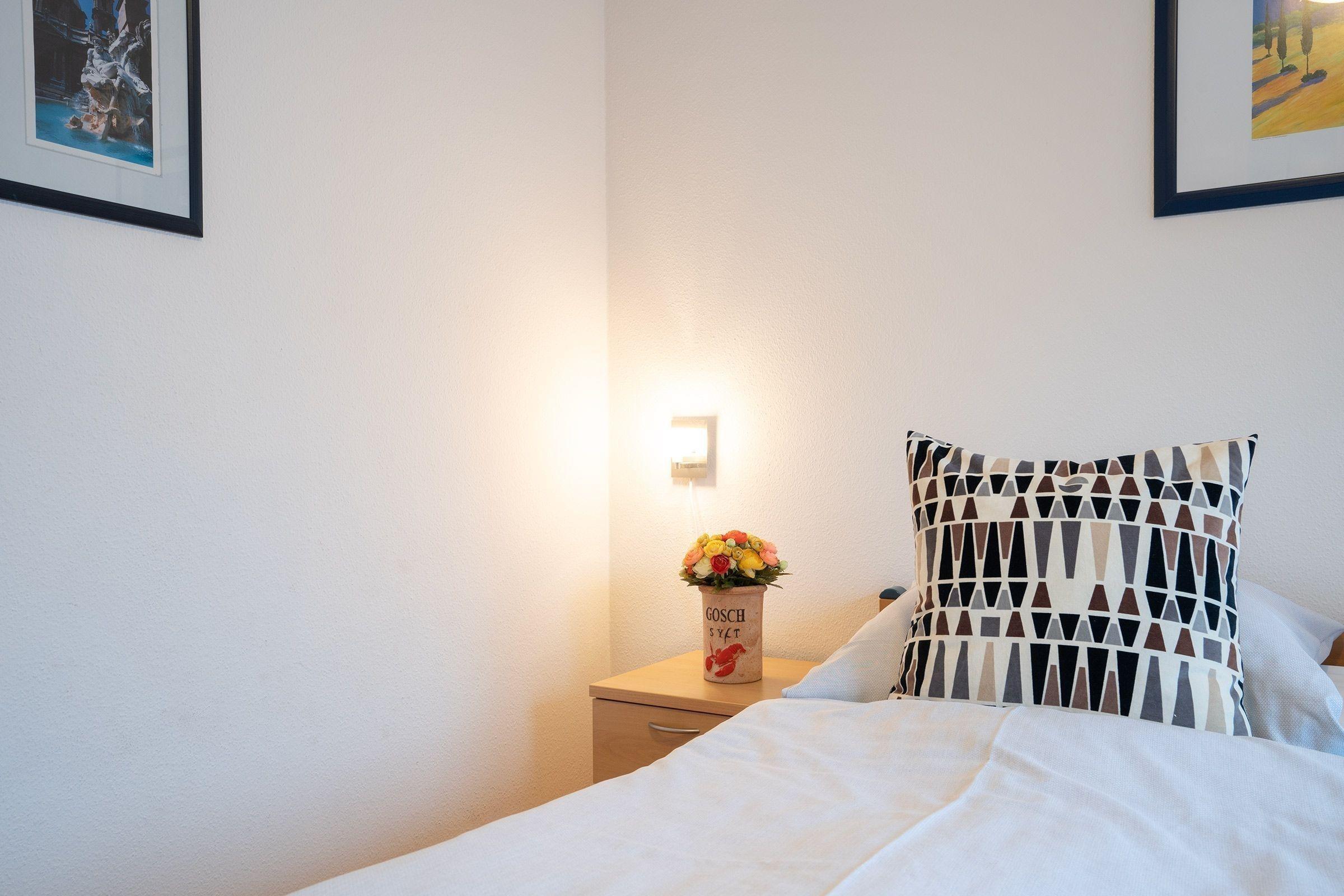 Das 2-Zimmer-Komfort-Apartment in der HANSEATEN RESIDENZ bietet auf ca. 50 m² eine helle und freundliche Atmosphäre. Der lichtdurchflutete Wohnraum ist mit Laminatboden ausgestattet und lädt mit einem Polstersofa, das als Schlafsofa umwandelbar ist, sowie zwei Sesseln und einem Couchtisch zum Verweilen ein. Ein großer Flachbild-TV und ein Radio mit CD- und DVD-Player ergänzen die Ausstattung. Die moderne, integrierte Einbauküche ist mit einem Geschirrspüler, einer Mikrowelle sowie einem Kaffeeautomaten ausgestattet und bietet Platz für einen Esstisch mit vier Stühlen. Im Schlafzimmer befindet sich ein Doppelbett und ein zusätzlicher TV mit DVD-Player. Das Badezimmer überzeugt mit einer Eckdusche und einem Handtuchwärmer. Highspeed-Internet ist ebenfalls vorhanden. Waschmaschine und Trockner stehen gegen Gebühr bereit. Rauchen ist in der Wohnung nicht gestattet.