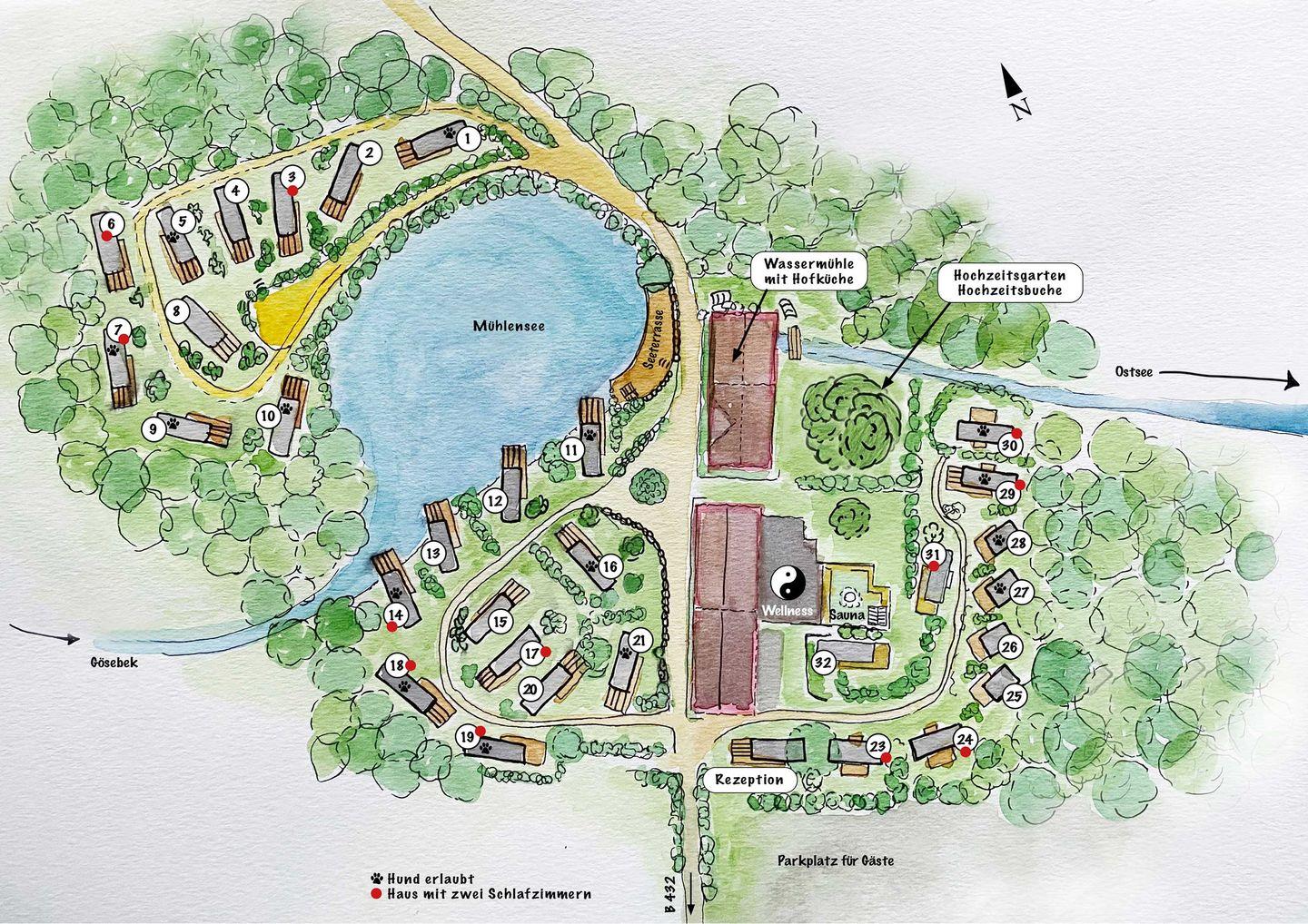 Mitten im Grünen, umgeben von malerischen Seen und nicht einmal 3 km von der Ostsee entfernt, wohnen Sie hier in stilvollen, modernen Ferienhäusern. Entspannung und Ruhe können hier ebenso auf dem Urlaubsprogramm stehen, wie Baden und Wandern.
