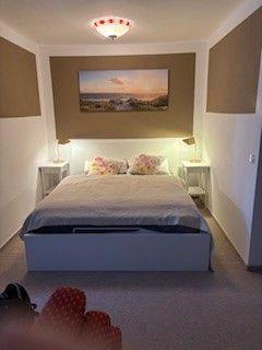 Im Wohnzimmer finden Sie ein Polstersofa mit Schlaffunktion (1,30x1,50m), den Couchtisch, TV, Telefon und einer Bose-Anlage. In der integrierten Schlafnische steht ein gemütliches Doppelbett (1,40x2m/große Matratze) und im separaten Schlafraum befinden sich zwei Einzelbetten. In diesem Zimmer sind Fenster und Tür vorhanden.