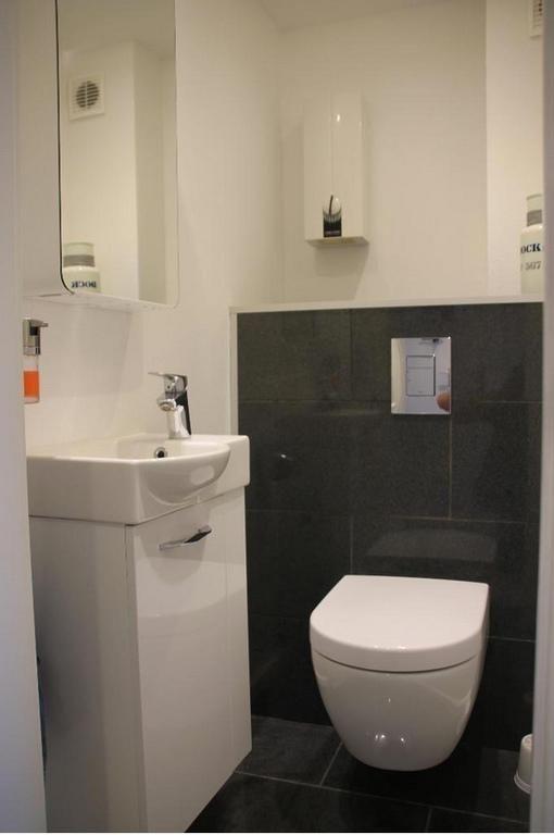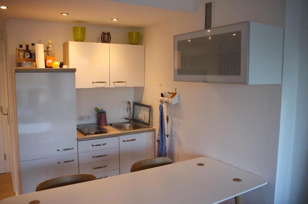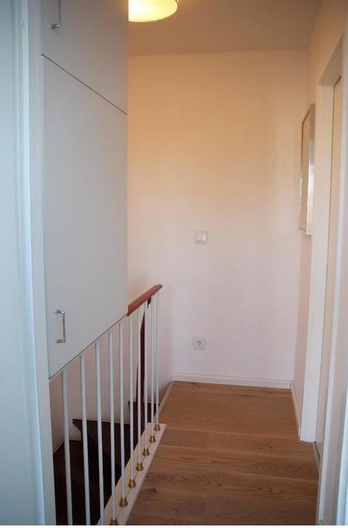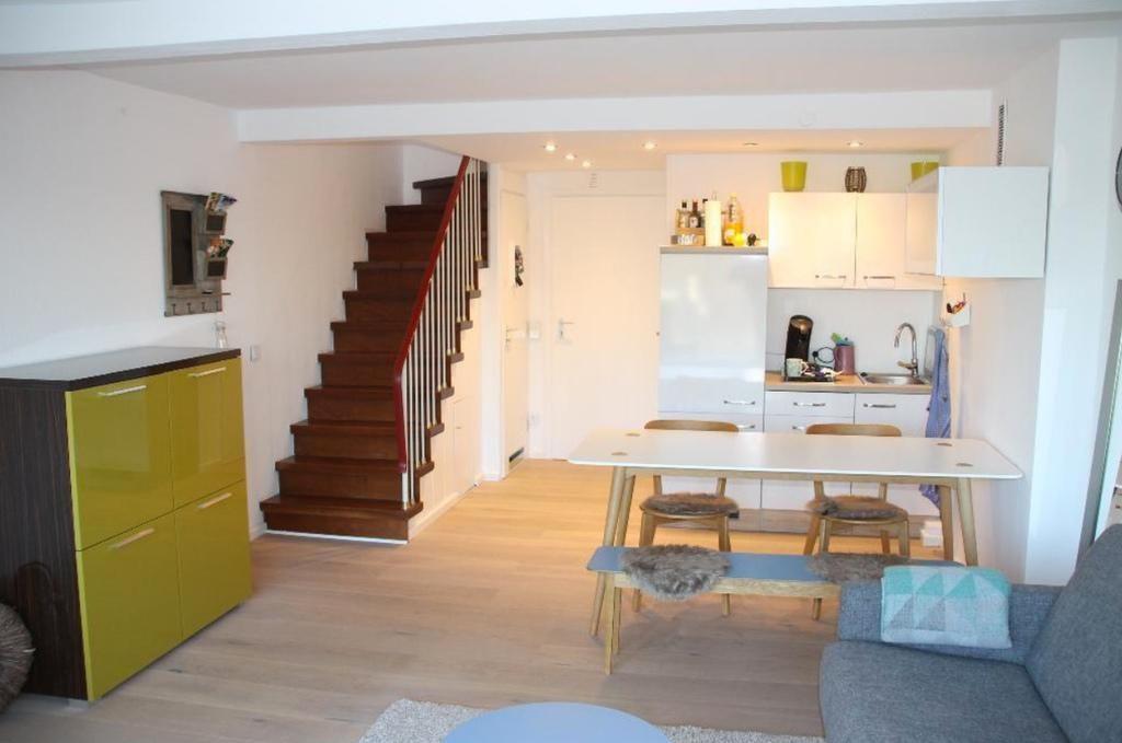 Auf der ersten Ebene findet sich im Wohnraum ein bequemes Sofa (mit Lattenrost Bettfunktion 160 m x 200 m), Sideboard und Flach-TV. die helle, moderne Einbauküche ist mit allen nötigen Utensilien ausgestattet und der Esstisch bietet Platz für 4 Personen. Im Flur gibt es einen Abstellraum und das Gäste-WC.