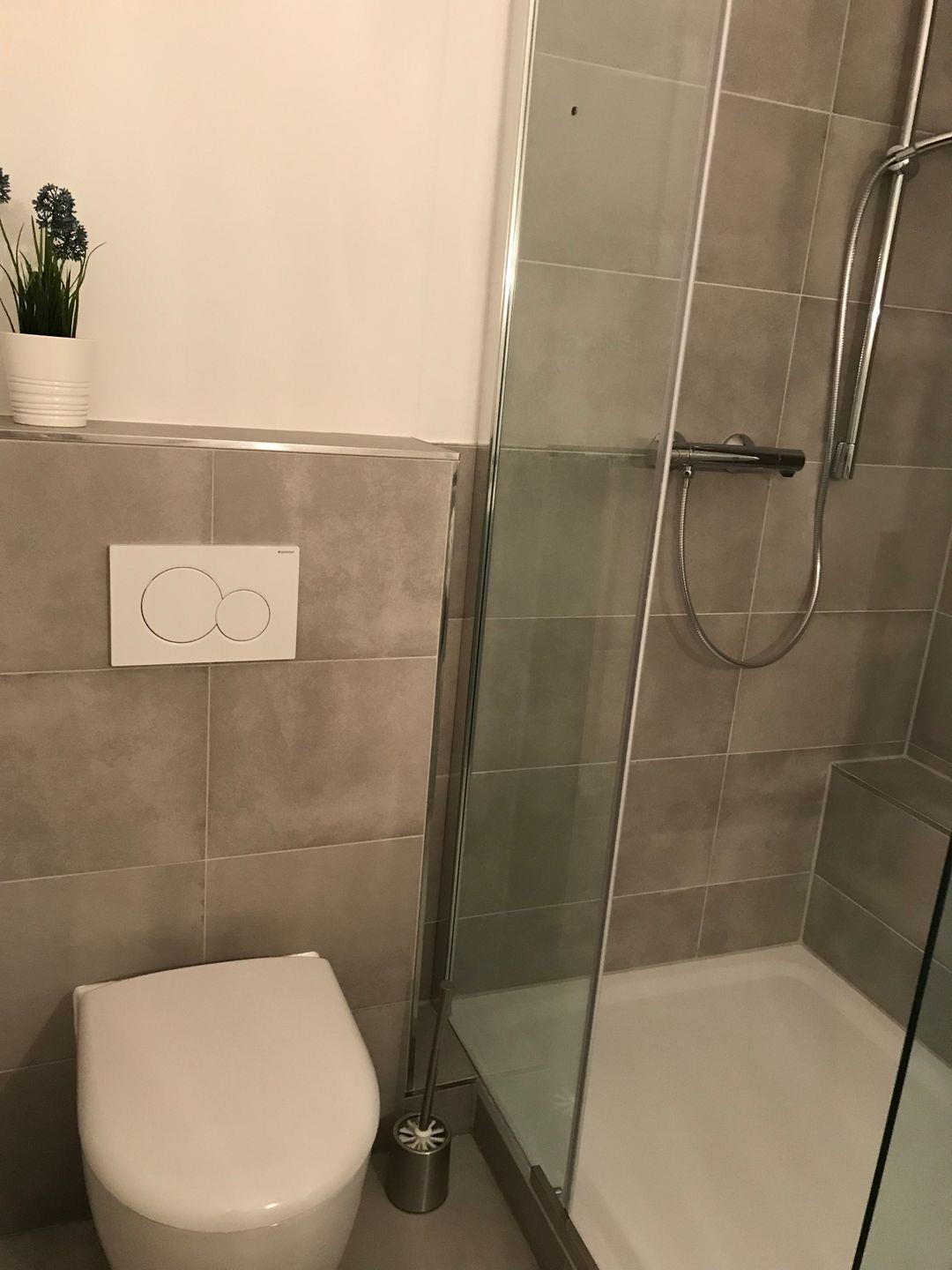 Auf der dritten Ebene im 4. OG findet sich ein neues Boxspringbett (180 cm x 200 cm), ein modernes Bad mit einem Flachspüler-WC und einer ebenerdigen Dusche. Die Waschmaschine darf kostenlos genutzt werden. Ein Trockner ist im Keller vorhanden und gegen Gebühr nutzbar.