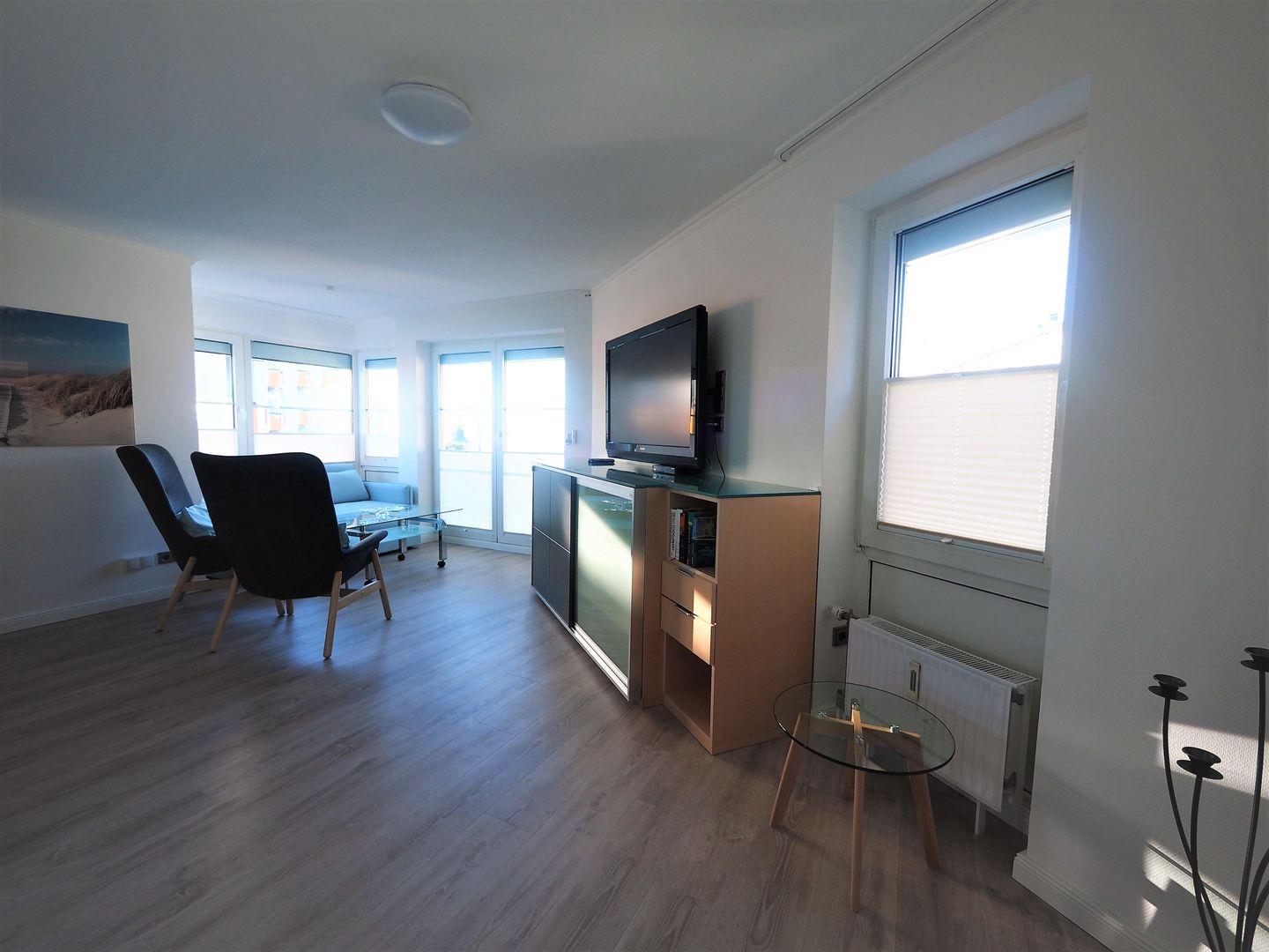 Das modern und geschmackvoll ausgestattete Appartement verfügt über eine geräumige Raumaufteilung: großzügig gestalteter Eingangsbereich, von dem aus ein Bad mit Dusche, sowie der Wohn- und Schlafbereich abgehen. Vom hell durchfluteten Wohnzimmer mit einer Schlafcouch, 2 gemütlichen Designerstühlen, einem großen Flach TV und angeschlossenem Essplatz mit Einbauküche können Sie den schönen Blick auf die Ostsee genießen. Das liebevoll eingerichtete Schlafzimmer, ebenfalls mit Blick auf das Meer, bietet ein schönes Doppelbett mit zwei Matratzen (0,80 m x 2,00 m), einem großen Kleiderschrank, sowie ein Flachbildschirm TV.