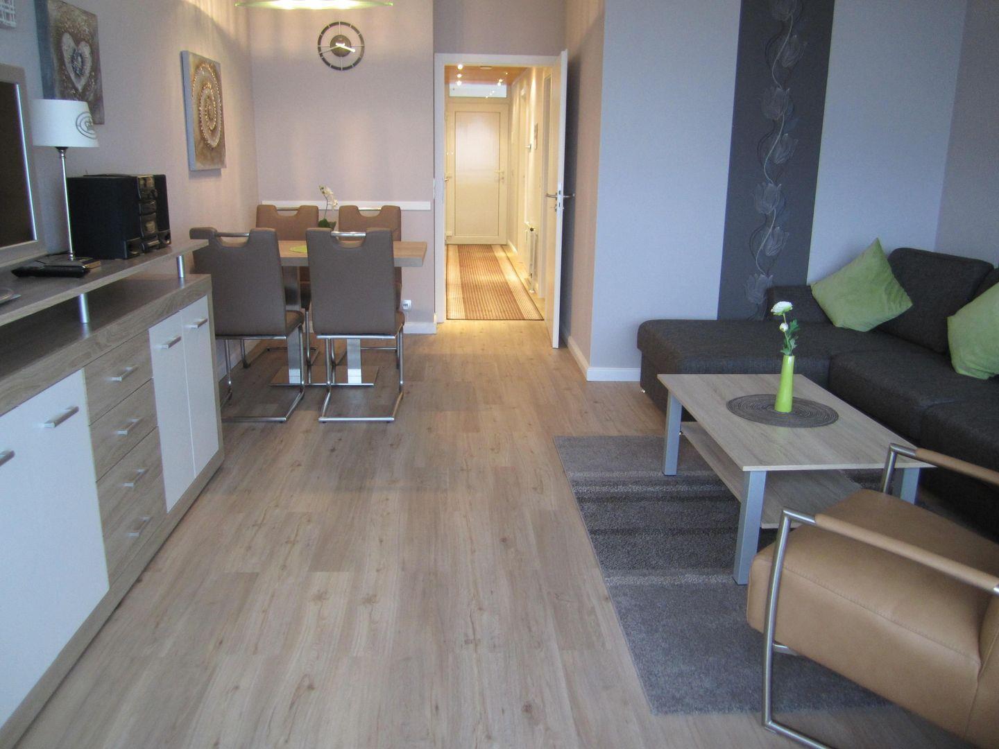 Das ca. 50qm große 2-Zimmer-Seeblick-Komfort- Appartement befindet sich im 3.Wohngeschoss und verfügt über einen großen Seeblick-Balkon mit Markise. Der großzügige Wohnraum ist mit einem Polstersofa - welches zum Schlafsofa umwandelbar ist (Liegefläche ca. 160x190cm) nebst einem Sessel, Couchtisch und TV ausgestattet. In der separaten Einbau-Küchenzeile finden Sie u.a. eine Grill/Mikrowelle und Geschirrspüler. Im Schlafzimmer stehen zwei Einzelbetten und ein großer Eckkleiderschrank, ein Fenster ist vorhanden. Im Flur- Eingangsbereich können Sie bequem Ihre Garderobe abgeben. Das Badezimmer ist hell und modern gefliest, hat eine Eckdusche und einen Handtuchwärmer.