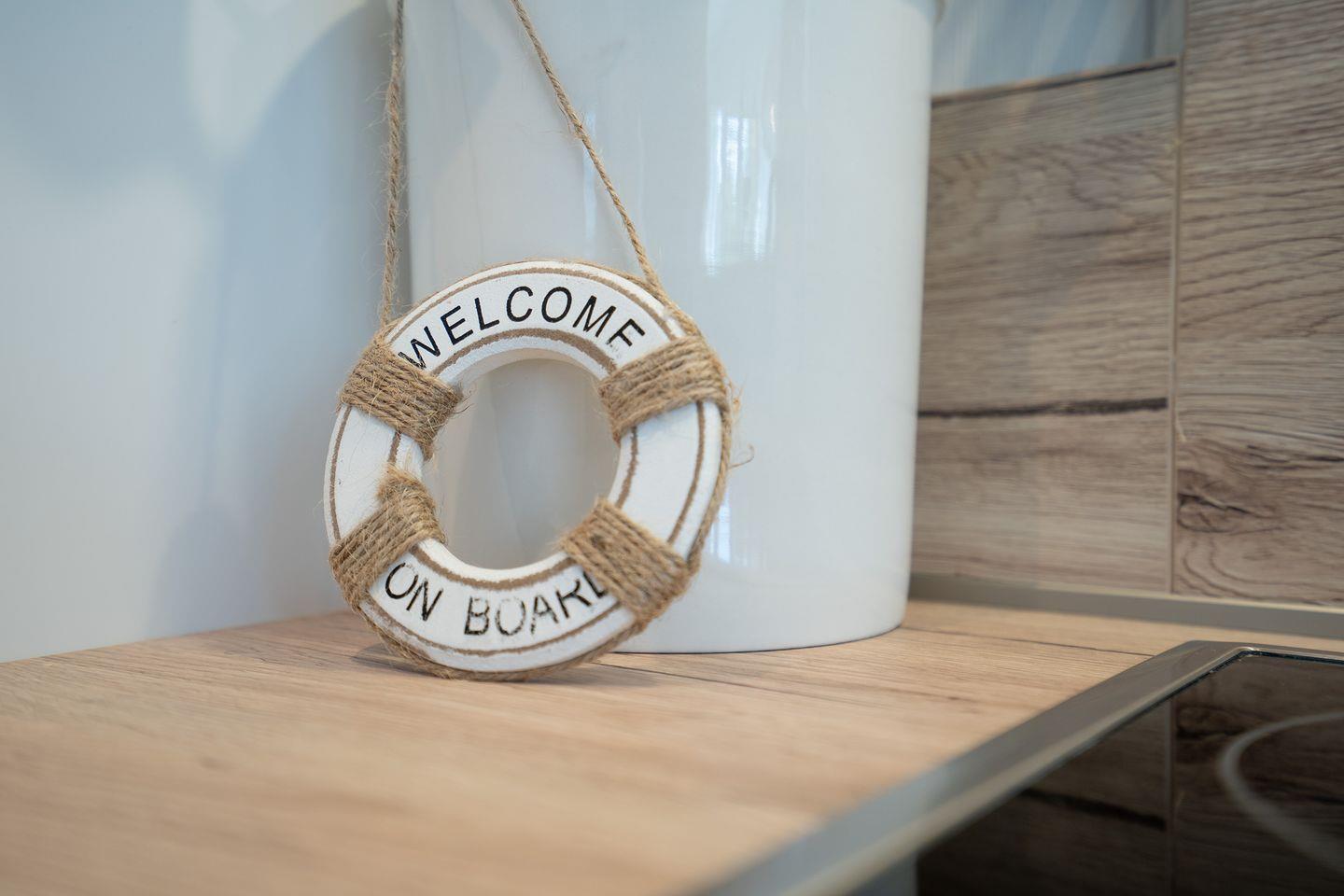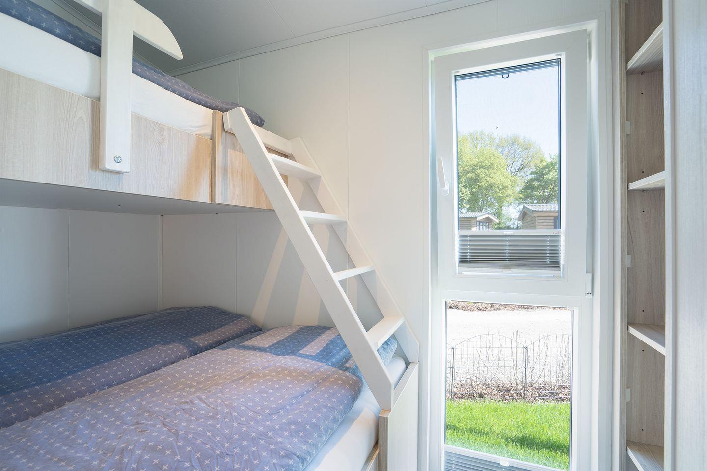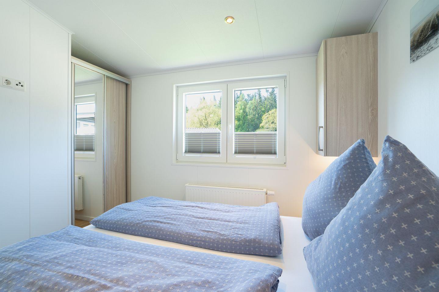Das Mobilheim verfügt über eine gehobene Ausstattung mit 2 Schlafzimmern, einem liebevoll eingerichteten Wohn-/Essbereich mit moderner Küchenzeile (Kühlschrank mit Gefrierfach, Spülmaschine, Ceranfeld, Mikrowellen-Kompaktbackofen, Kaffeemaschine, etc.), sowie einem Badezimmer mit großer Dusche. Im Wohnbereich befindet sich der Essplatz für 4 Personen sowie ein Ecksofa und ein Flachbild-TV. Die beiden Schlafzimmer verfügen über ein Doppelbett (1,60 x 2,00 m) und ein Bunk-Bett (1,40 x 2,00 m, sowie 0,80 x 2,00 m).