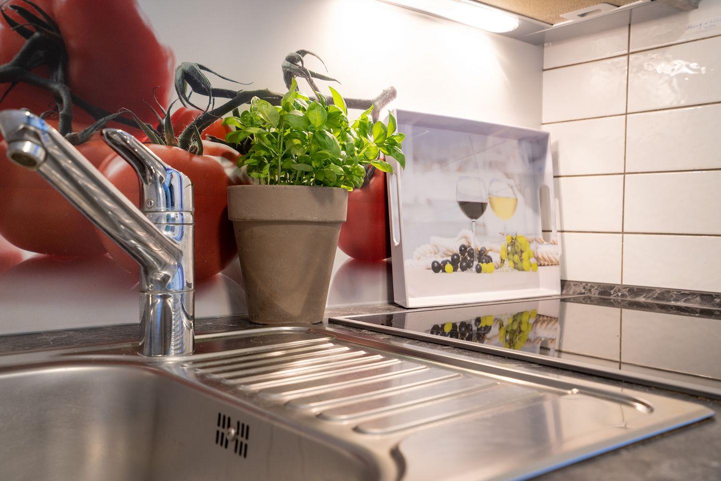 Eine komplett eingerichtete Pantryküche mit einer klassischen Kaffeemaschine lässt keine Wünsche offen.
