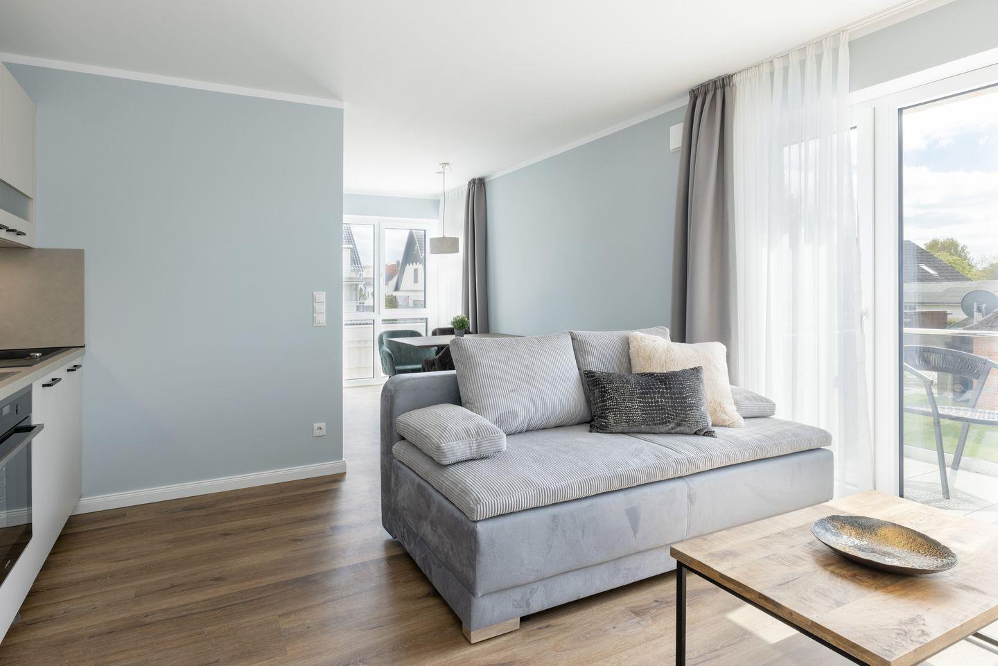 Erstklassige 2-Zimmer-Ferienwohnung für 4 Personen im Appartementhaus “Sturmfrei” mitten im Ostseebad Scharbeutz.