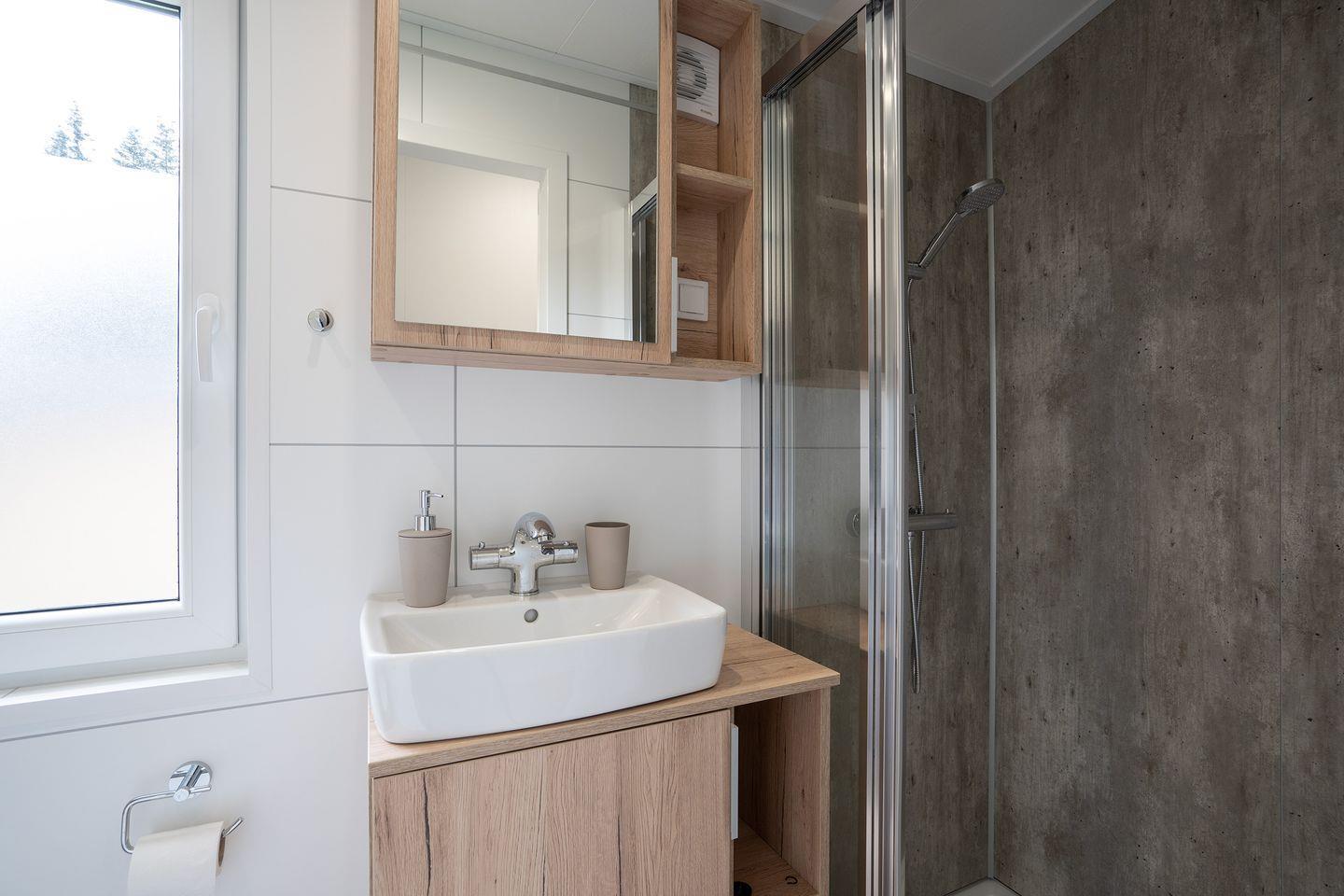 Im Badezimmer erwartet Sie eine komfortable Dusche sowie eine Handtuchheizung. Ein Fön liegt ebenfalls für Sie bereit.