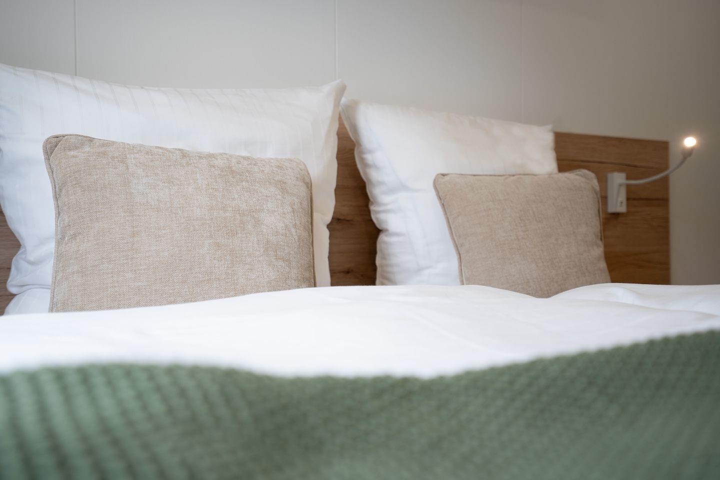 Unser Ferienhaus "KleineDüne" verfügt über ein großes Schlafzimmer mit einem einladenden Doppelbett (180x200cm), sowie ein Kinderzimmer mit zwei behaglichen Einzelbetten (je 90x200cm). In beiden Zimmern bieten geräumige Kleiderschränke ausreichend Stauraum. Das Highlight im großen Schlafzimmer ist ein beleuchteter Schminktisch, der auch als inspirierender Arbeitsplatz genutzt werden kann.