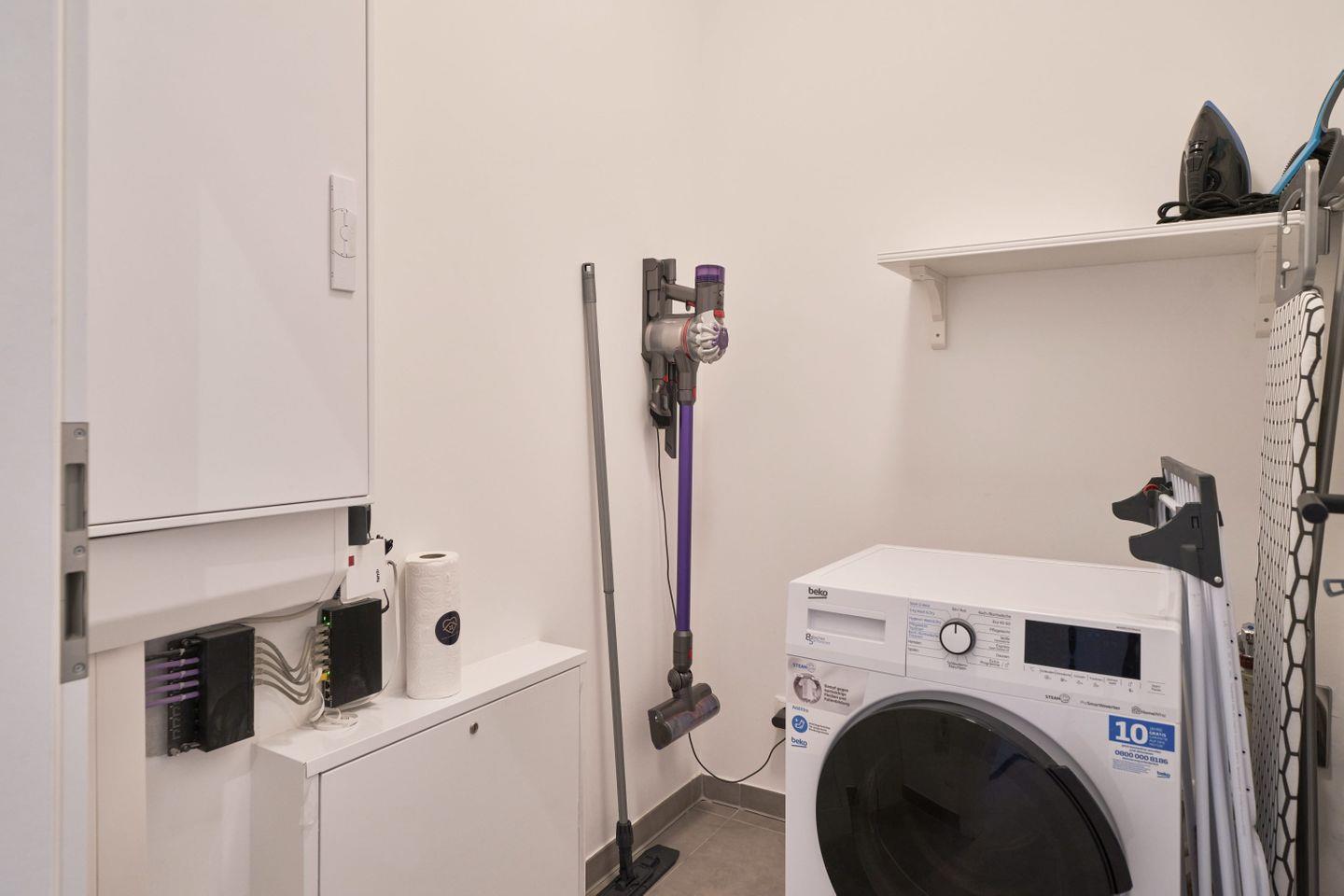 Das Badezimmer ist modern in neutralen Naturtönen gestaltet und besticht mit einem beleuchteten Spiegel samt Spiegelheizung – ein echtes Highlight für das tägliche Frischegefühl. Ein Föhn ist ebenfalls vorhanden.