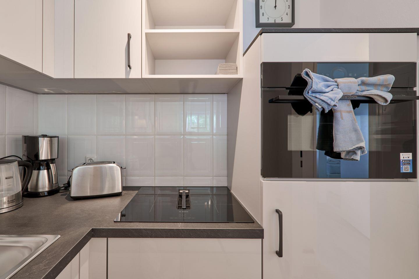 Beim Betreten der Wohnung erwartet Sie ein freundlicher, offener Wohn- und Essbereich, der mit einer neuen, modernen Einbauküche ausgestattet ist. Hier finden Sie alles, was Sie für die Zubereitung Ihrer Mahlzeiten benötigen – von einem Herd mit Backofen über einen Kühlschrank bis hin zu einer Kaffeemaschine. Der angrenzende Essbereich bietet ausreichend Platz für gemütliche Mahlzeiten. Im Wohnbereich lädt eine bequeme Schlafcouch zum Entspannen ein und kann bei Bedarf als zusätzliche Schlafmöglichkeit genutzt werden.