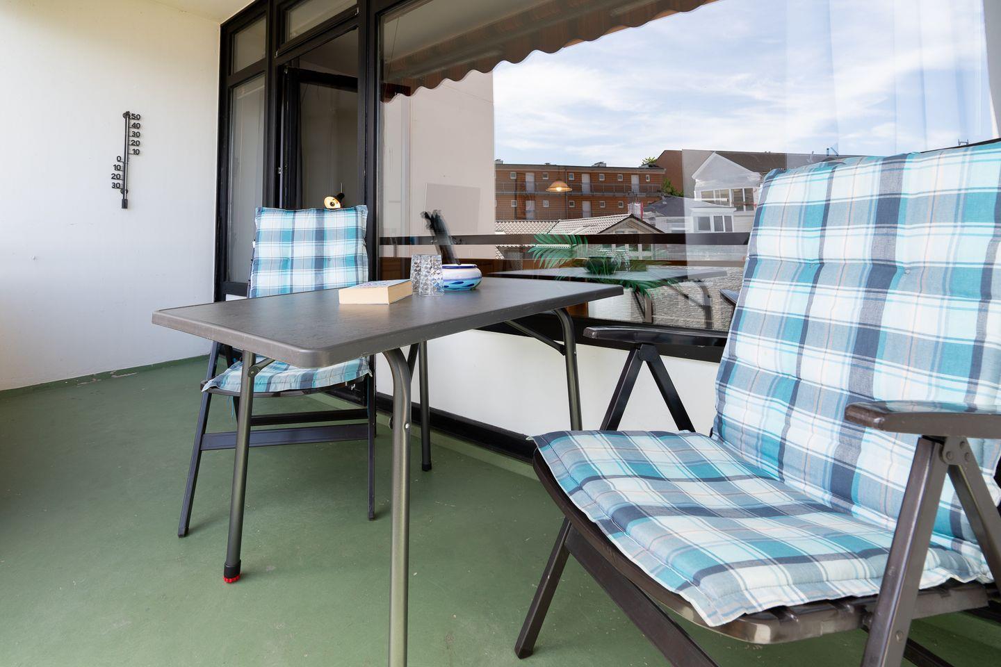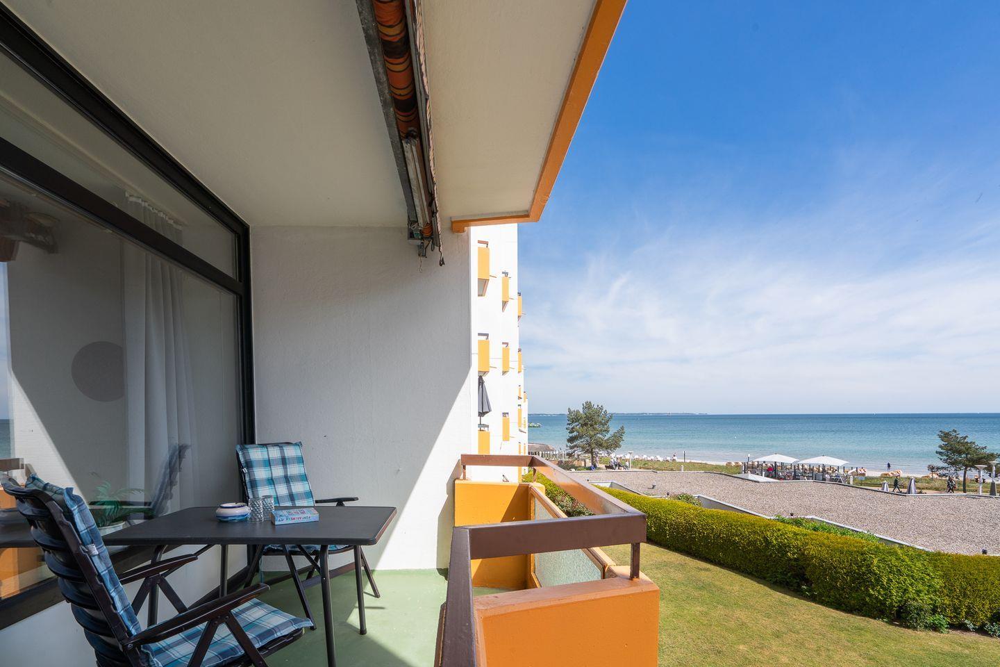 Ein besonderes Highlight ist der überdachte Balkon, auf dem Sie die ersten Sonnenstrahlen des Tages oder romantische Abendstunden mit Blick auf das Meer erleben können. Die außergewöhnlich gute Sicht auf die Ostsee lädt dazu ein, den Alltag hinter sich zu lassen und die Seele baumeln zu lassen.
