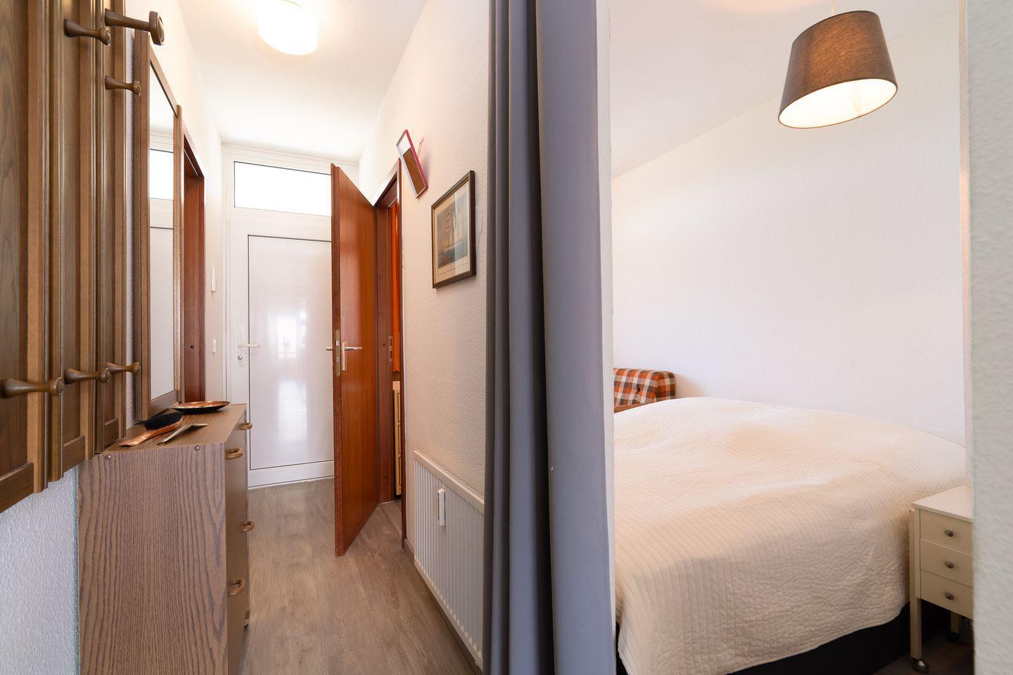 Das Schlafzimmer bietet einen komfortablen Rückzugsort mit ausreichend Platz für Ihre persönlichen Gegenstände. Es ist mit einem hochwertigen Bett ausgestattet, das erholsame Nächte garantiert. Das innenliegende Badezimmer verfügt über eine Dusche. Für zusätzlichen Komfort stehen Ihnen ein gemeinschaftlich genutzter Trockner und Waschmaschine zur Verfügung.