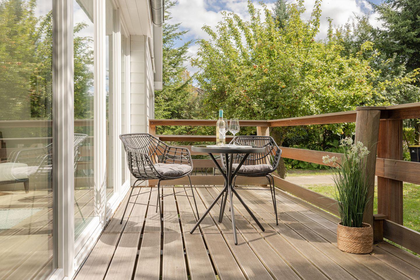 Im Garten mit Terrasse können Sie den Tag ruhig ausklingen lassen. Ein Parkplatz steht direkt am Haus zur Verfügung. Durch die zentrale Lage erreichen Sie den Strand, den Bahnhof, Restaurants und Einkaufsmöglichkeiten ganz bequem zu Fuß – ideal für einen Urlaub ohne lange Wege.