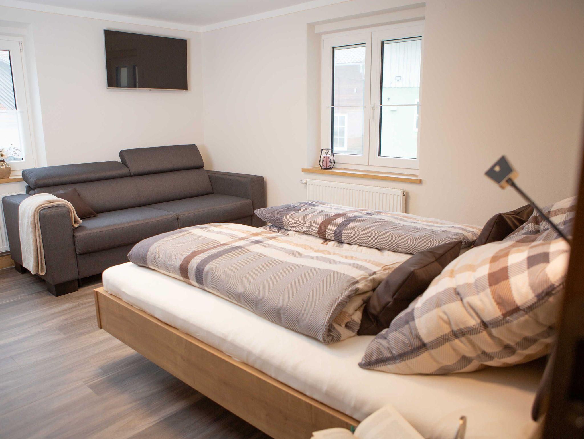 Unsere neu gestaltete 5***** Obergeschosswohnung „Anna“ ist großzügig und hochwertig eingerichtet. Mit einer voll ausgestatteten Küche, 3 geräumigen Schlafzimmern mit TV einem offenen Wohn- und Essbereich mit TV und großem Panoramafenster mit Balkon, 2 Bädern bietet sie viel Platz und Möglichkeiten zum Ausruhen, mit ebenso herrlichen Blick ins Tal.