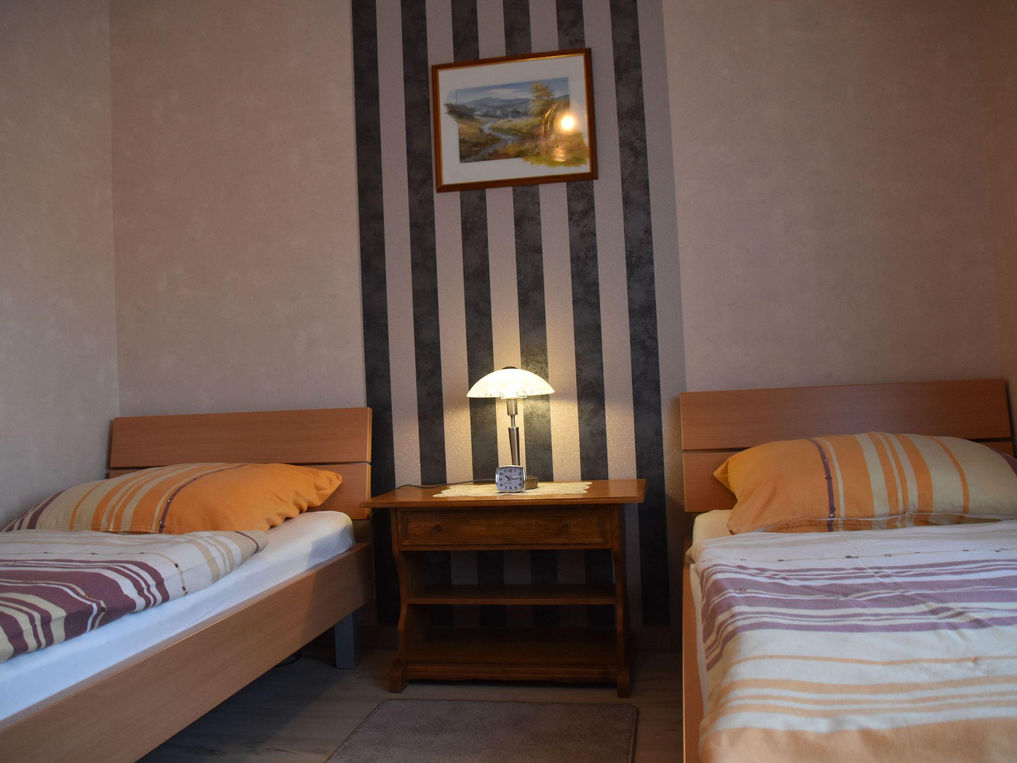 Die 90 m² große (3 Zimmer) Ferienwohnung „Zum Bären“ wurde im Jahr 2023 neu renoviert und modernisiert. Hier finden bis zu 6 Personen Platz und auf Anfrage kann ein Kleinkind im Babybettchen einen Schlafplatz finden. Alle Räume sind mit einer Fußbodenheizung ausgestattet und bestechen durch ein helles, freundliches Ambiente. Das Grundstück ist umzäunt und bietet sich gut für Familie mit Kindern an. Im Garten besteht die mit Möglichkeit zu Grillen und lädt daher zum Verweilen ein. Eine verschließbare Unterstellmöglichkeit für mitgebrachte Fahrräder, ein kostenloser Parkplatz für den PKW, sowie eine abschließbare Garage sind auf Grundstück vorhanden. WLAN steht Urlaubern kostenfrei zur Verfügung.