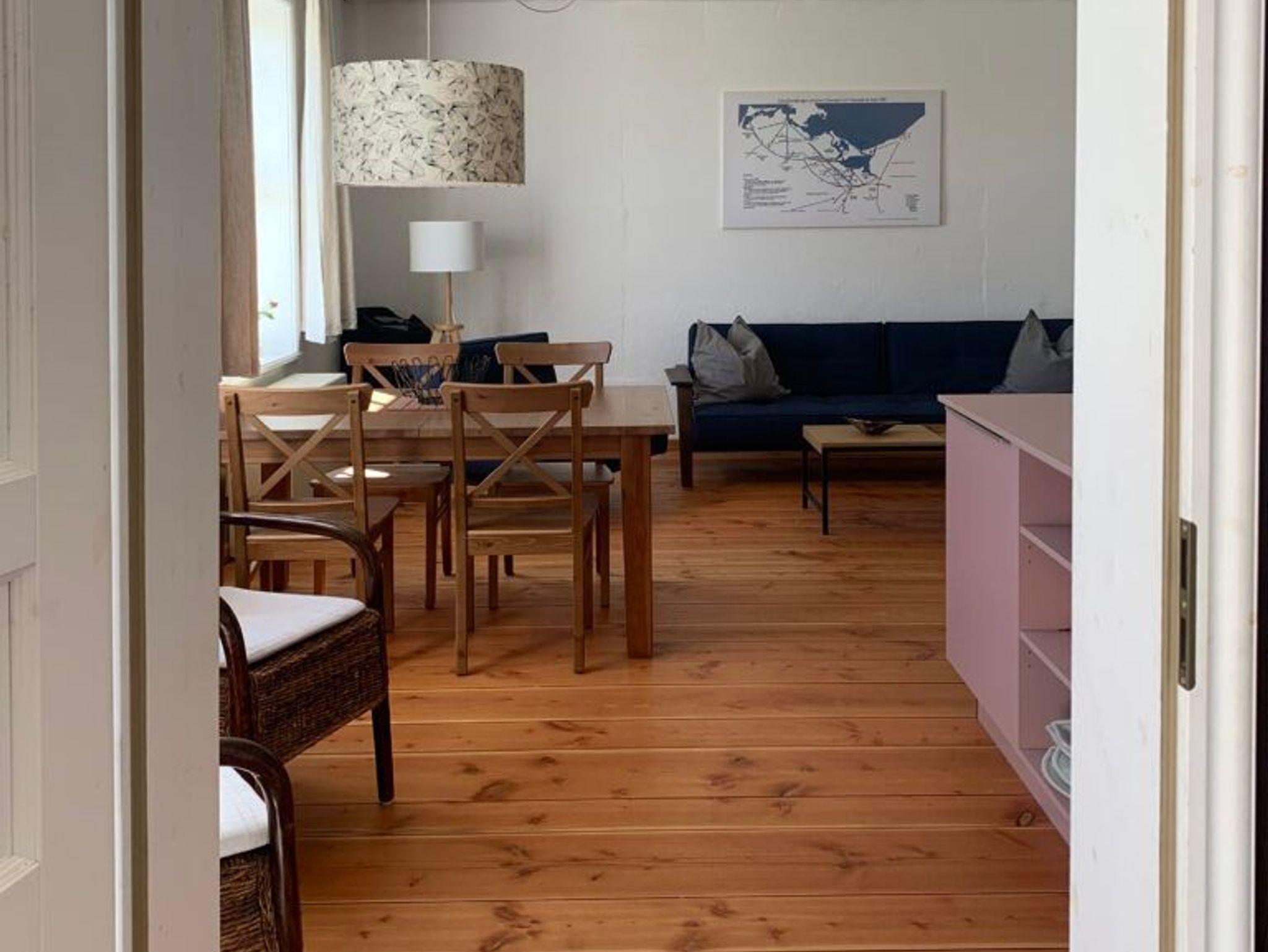 Zwischen den beiden großen Wohnungen (Fewo 2 & 3) liegt ein 40qm großer Gemeinschaftsraum mit Küche und WC, der zum gemeinsamen Essen, Arbeiten, Spielen und für Gruppenaktivitäten genutzt werden kann. Ein Schlafsofa bietet hier zudem 2 zusätzliche Schlafgelegenheiten.