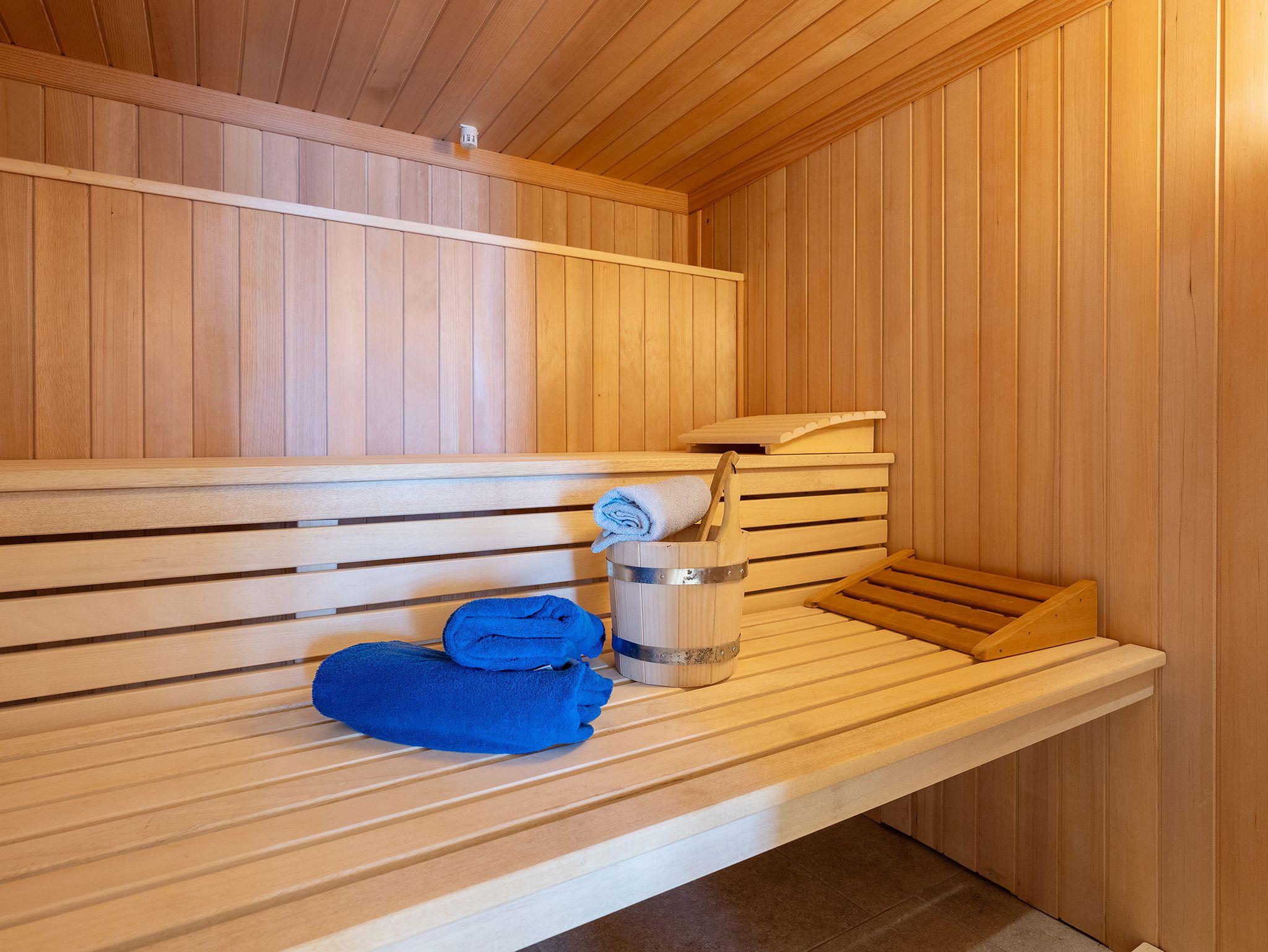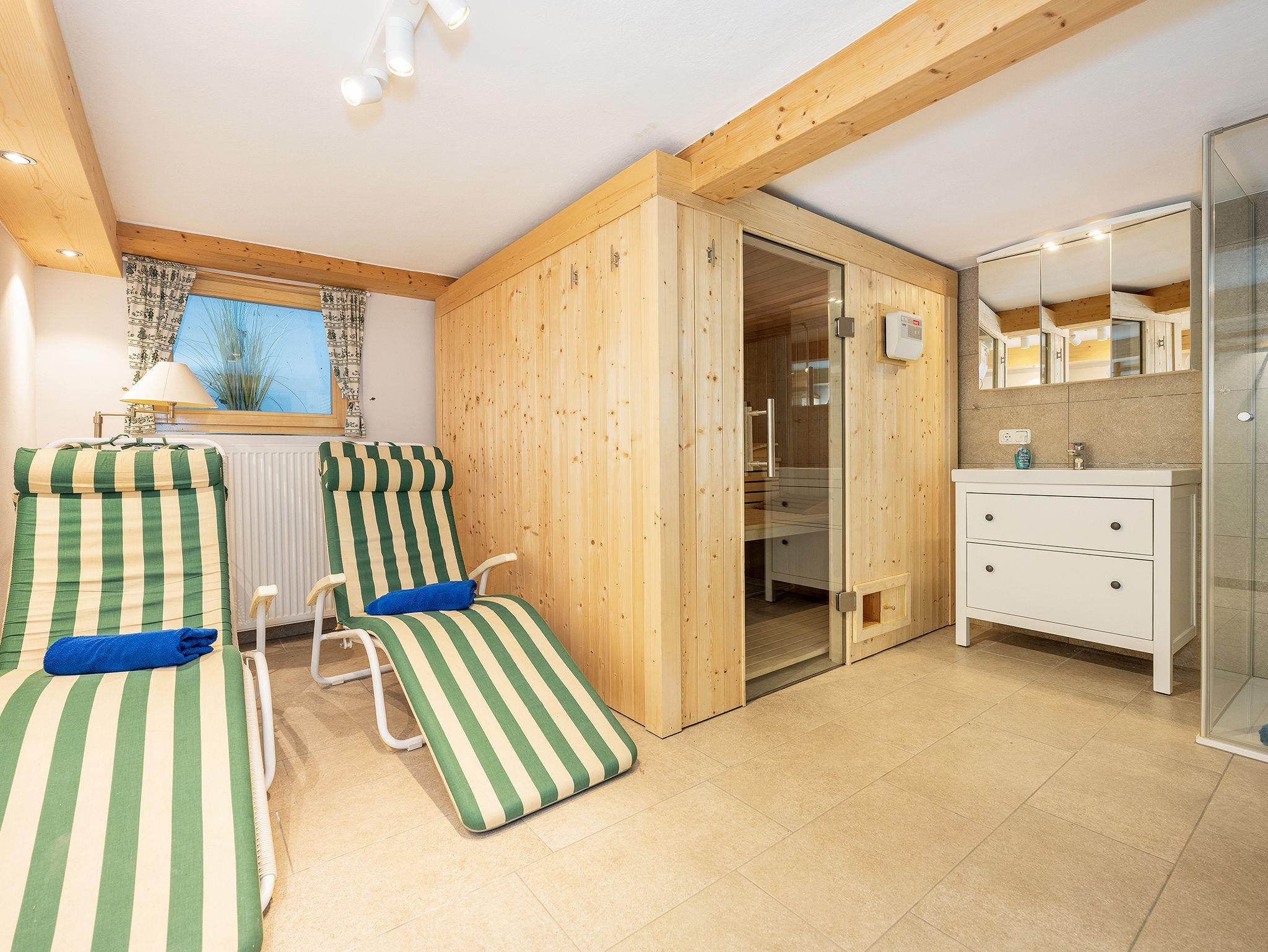 Nach einem aktiven Urlaubstag lädt die moderne Sauna mit eigener Dusche und kleinem Ruheraum zum Wohlfühlen ein.