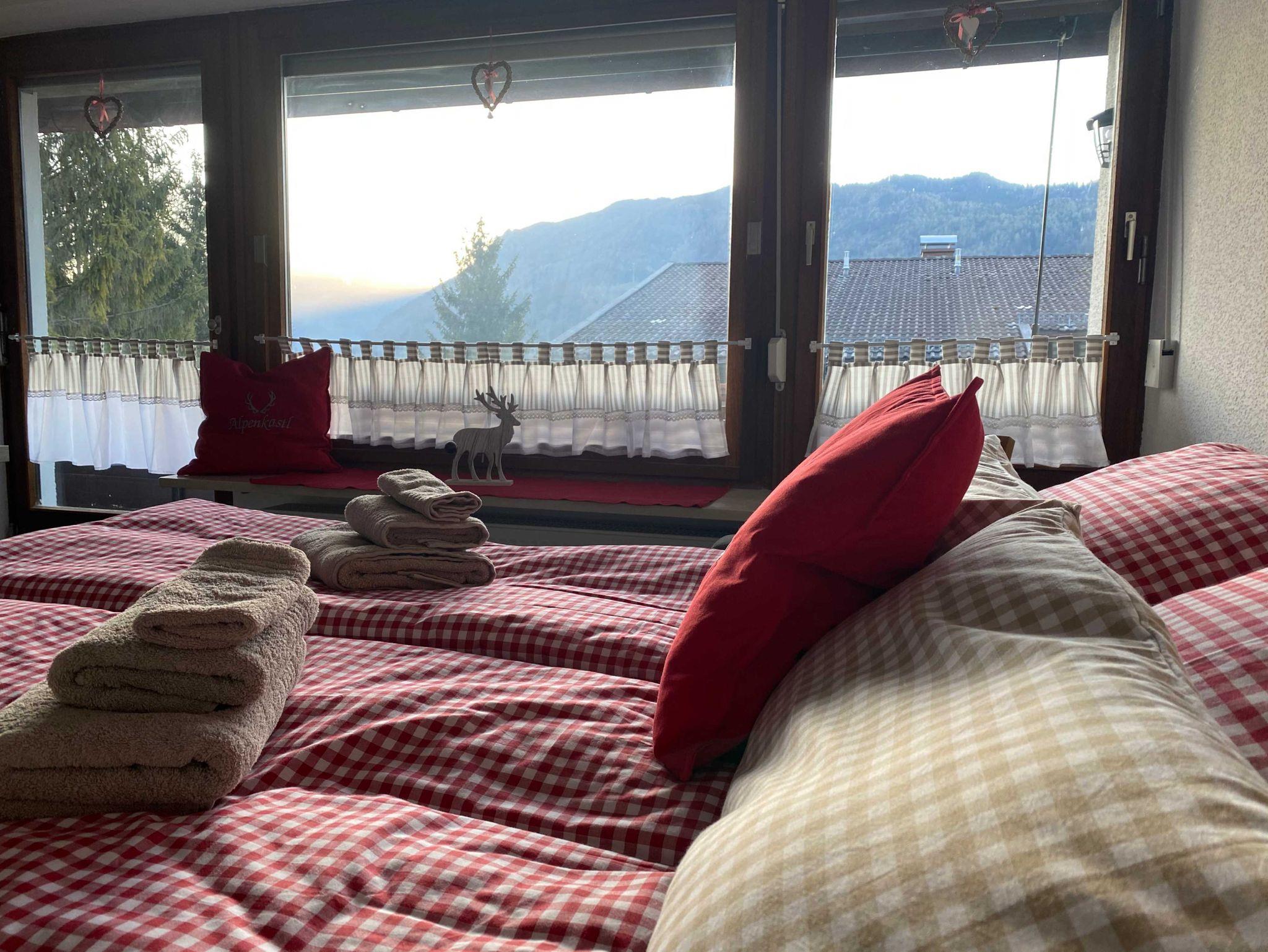 Wir haben 2 Ferienwohnungen (AlpenKastl 40qm und AchenKastl 40 qm). Sie können jeweils eine FeWo buchen, oder bei Bedarf auch beide (80 qm). Sodann können Sie den Durchgang zwischen den Wohnungen nutzen.