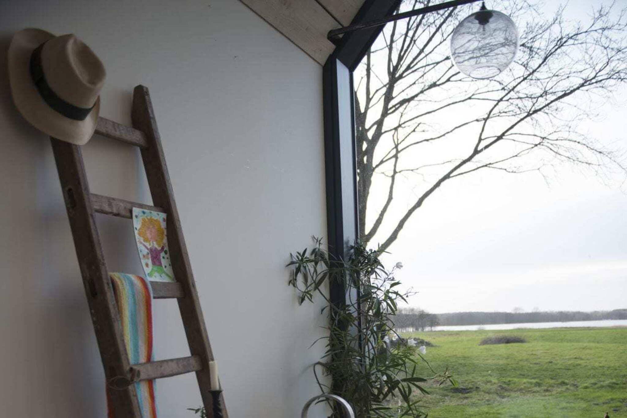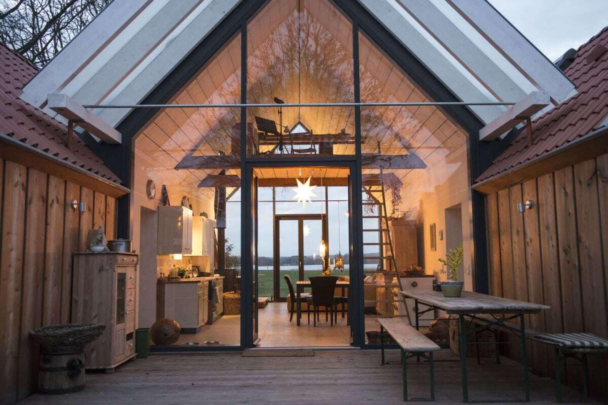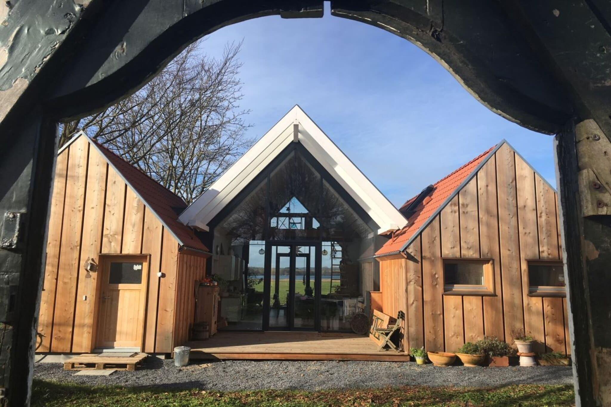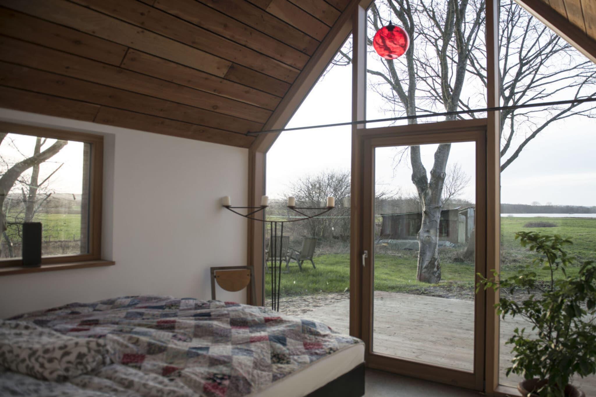 Vores arkitekttegnede lyshus er moderne, rummeligt og samtidig yderst hyggeligt. Det byder på 75 kvadratmeter plads til 2 personer + et lille barn. Det nye hus byder på al komfort med gulvvarme, opvaskemaskine, vaskemaskine og tørretumbler. 3 terrasser giver dig mulighed for at spise og bo udenfor. Huset ligger i udkanten af landsbyen, med udsigt over søen og naturlige enge. Det er næsten, som om du bor ude i naturen. Men du kan tænde pejsen eller se stormen over søen eller fasanen på terrassen fra din seng. Alle værelser er oversvømmet med lys og behageligt oplyst om aftenen. Der er et dejligt brusebad. Badekarret med udsigt over søen er i opholdsstuen. Den venstre, adskilte, lille del af huset er ikke udlejet